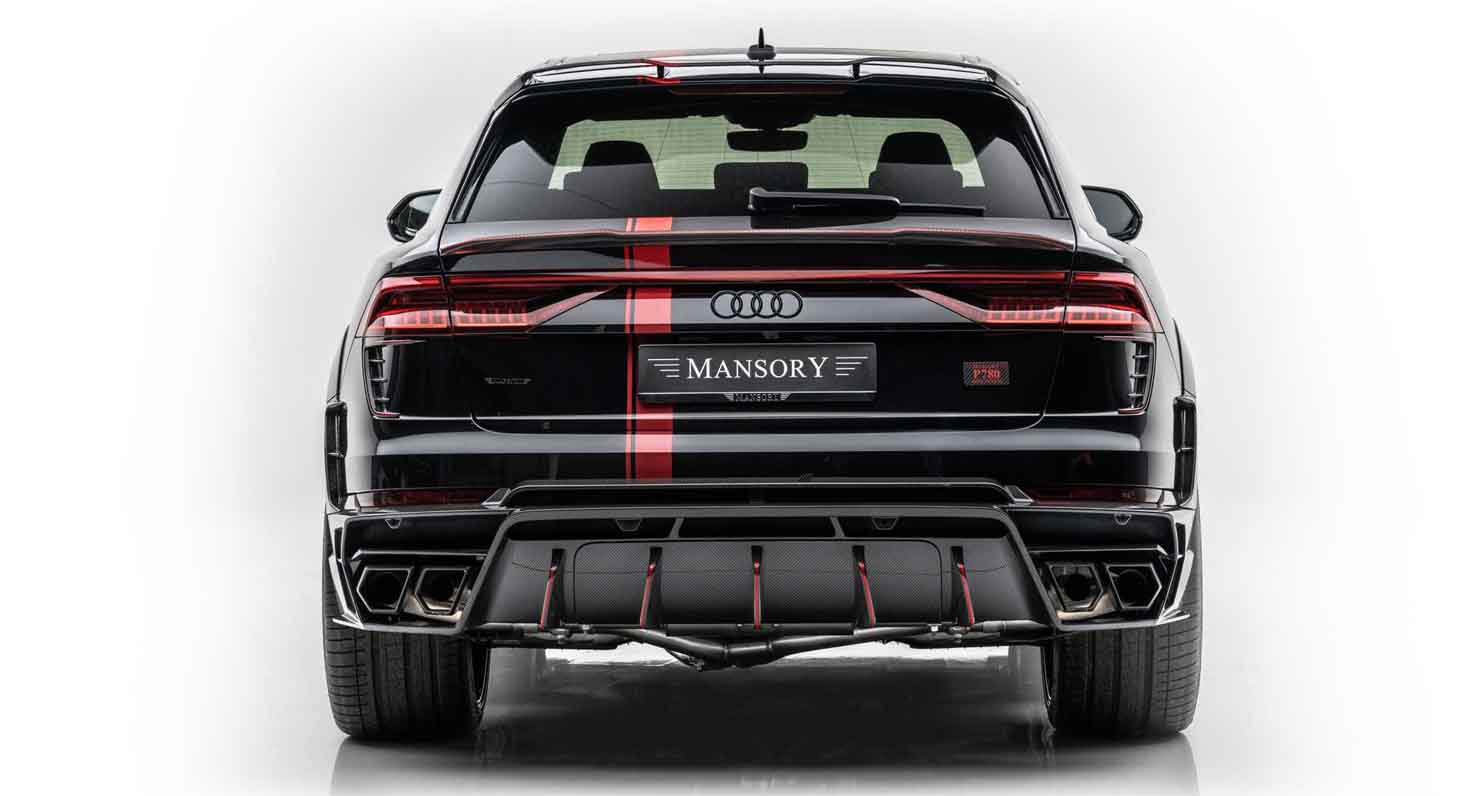 Benefiting from many years of experience with the “MANSORY Venatus” and the many conversions of the “MANSORY RS6”, the MANSORY development department also helped the identically constructed V8 twin turbo in the RSQ8 to achieve noticeably more power and elasticity thanks to a modified ECU unit and a high-performance exhaust system, which has been both developed and built in-house. Thus, powerful 780 hp (574 KW) and 1,000 Nm, shorten the sprint from 0 to 100 km/h to 3.3 s and let the acceleration of the luxury SUV end at an impressive 320 km/h.