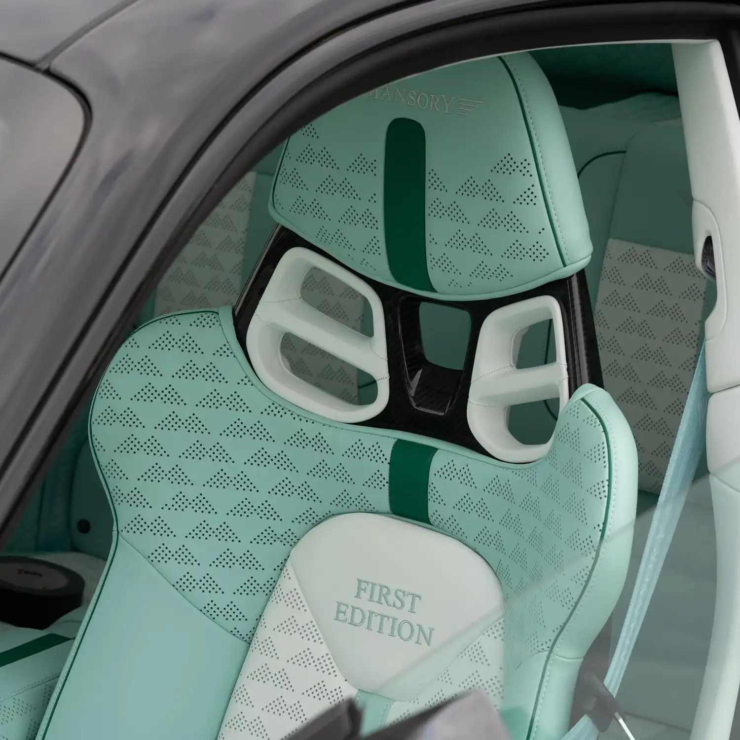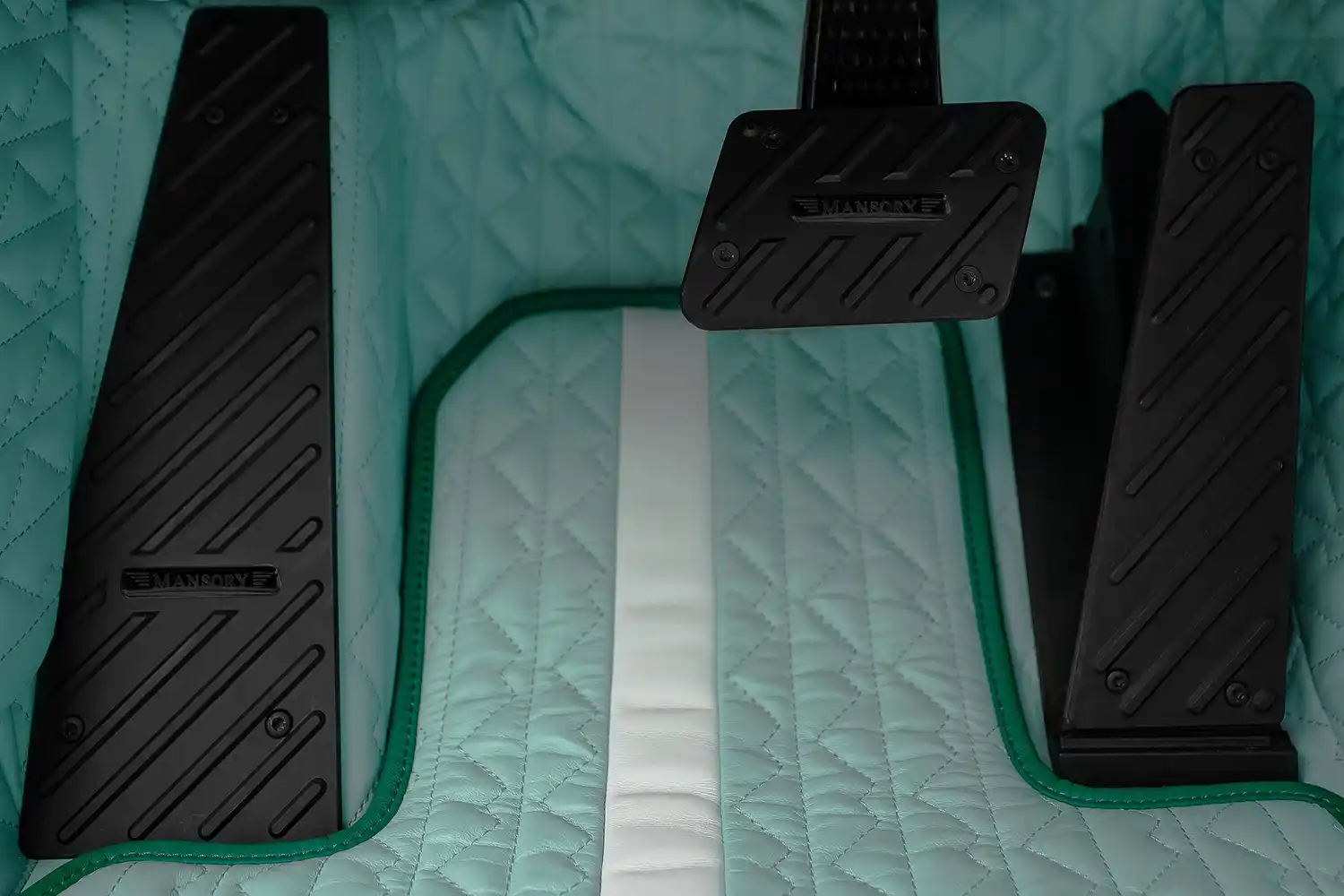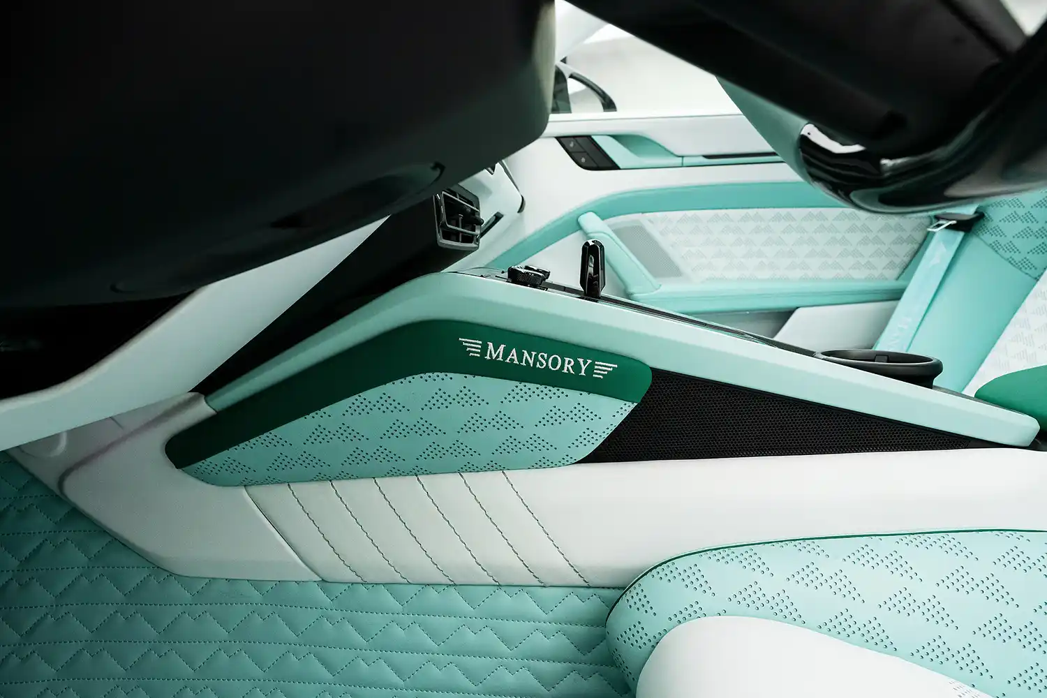 Specially made MANSORY floor mats, colour-matched seat belts with MANSORY logos and countless other precisely embroidered MANSORY logos elegantly round off the fully comprehensive refinement in the interior. Technical features such as seat heating and seat ventilation are, of course, also retained unchanged in the redesign of the interior.