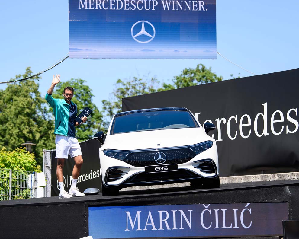 Tennis pro Marin Cilic won the MercedesCup in Stuttgart. The 32-year-old Croatian prevailed in the two-set final (7:6, 6:3) against Felix Auger-Aliassime from Canada. Additionally to the prize money of 53,280 euros, he also takes home the new EQS from Mercedes-EQ.