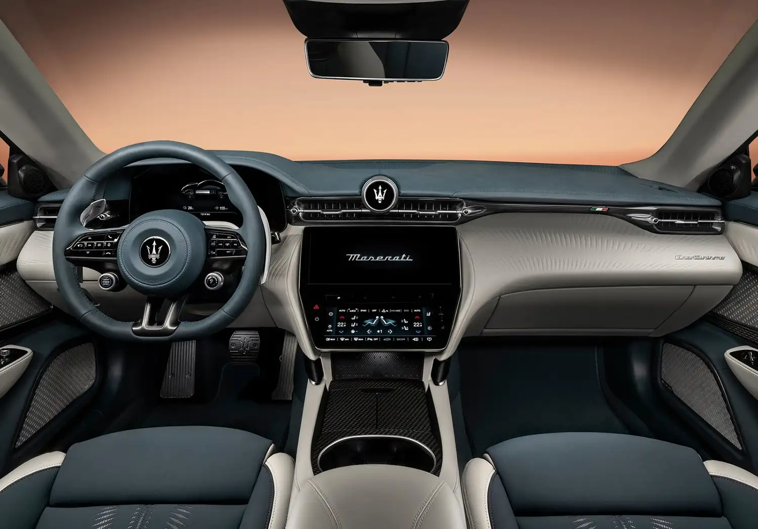 The same dynamism enhances the dashboard and panels, via the “high-frequency” leather printing technology, a process borrowed from high-end leather goods, brought to a car for the first time by Maserati.