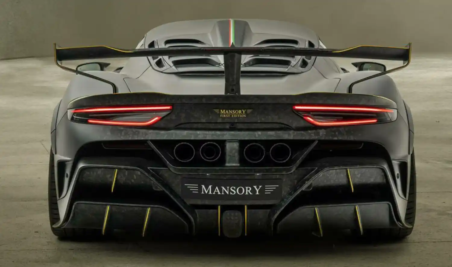 An impressive, also completely new rear wing and a completely newly developed double diffuser with central brake light increase downforce on the rear axle and complete the extensive aerodynamic improvements to the “MANSORY FIRST EDITION” to create a visually coherent overall package.