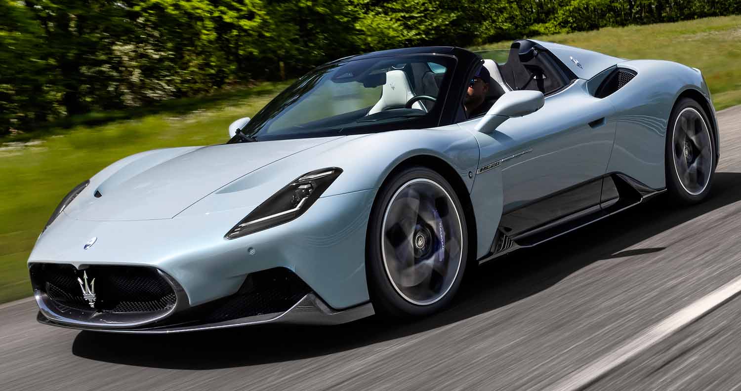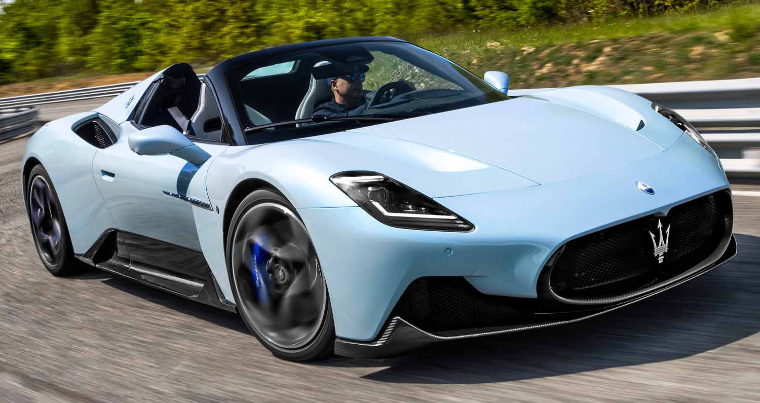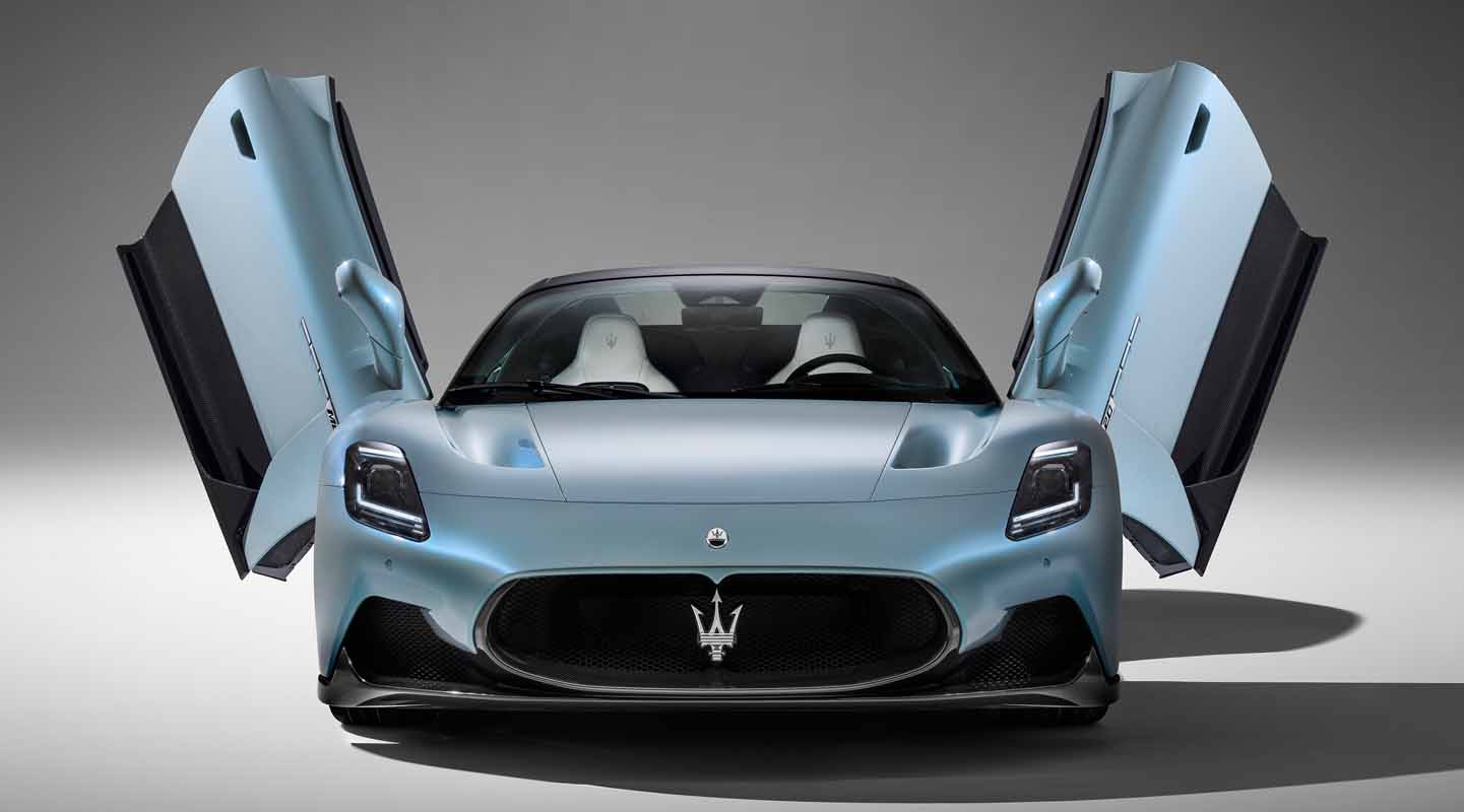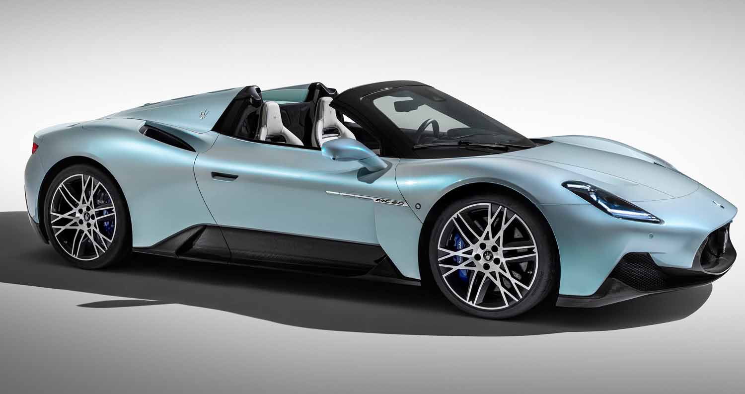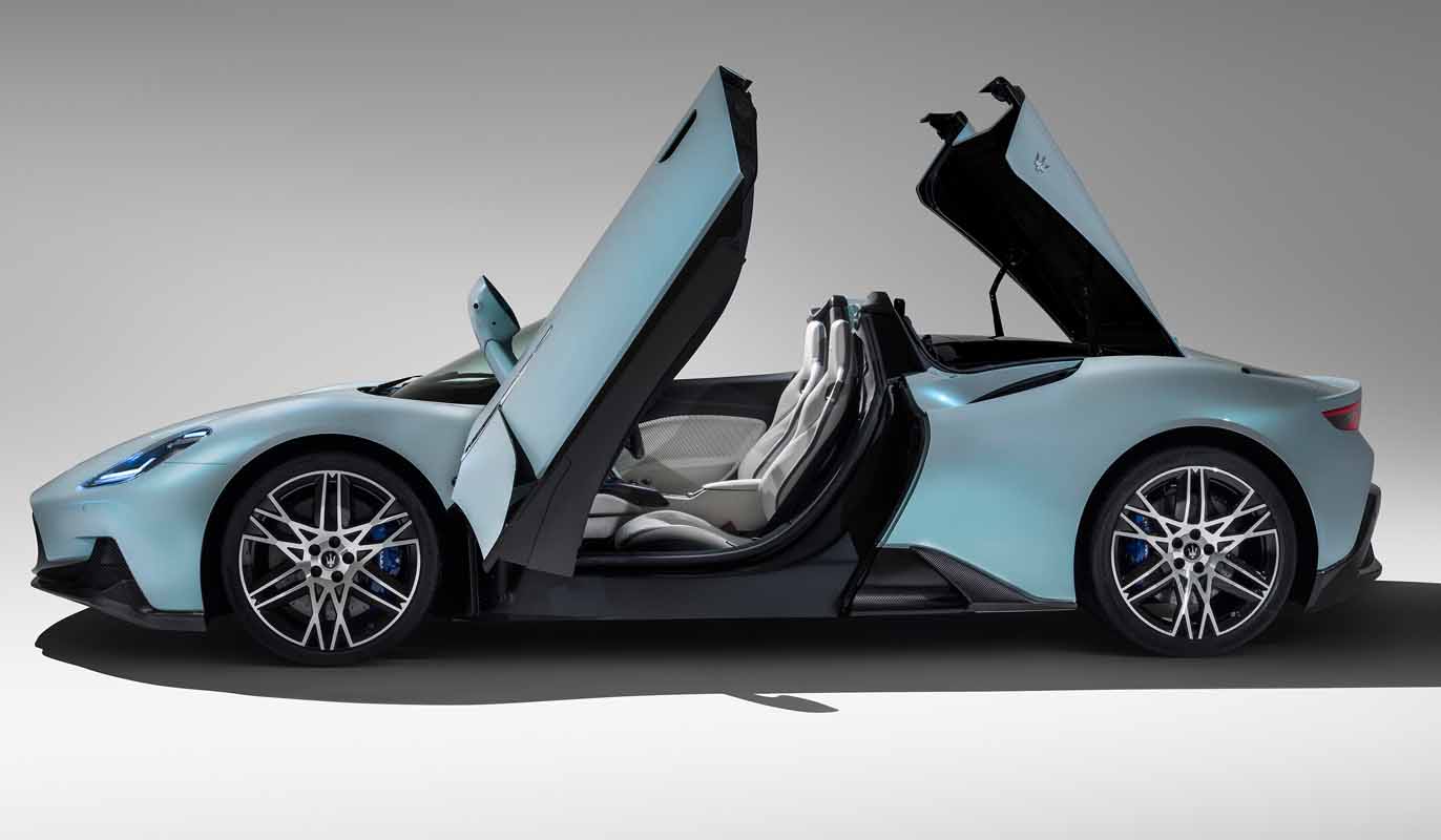 Other than the launch hue, MC20 Cielo revisits the colour palette created for the coupé, plus Grigio Incognito (a pastel grey). The range therefore encompasses five other colours: Bianco Audace, Giallo Genio, Rosso Vincente, Blu Infinito, and Grigio Mistero.
