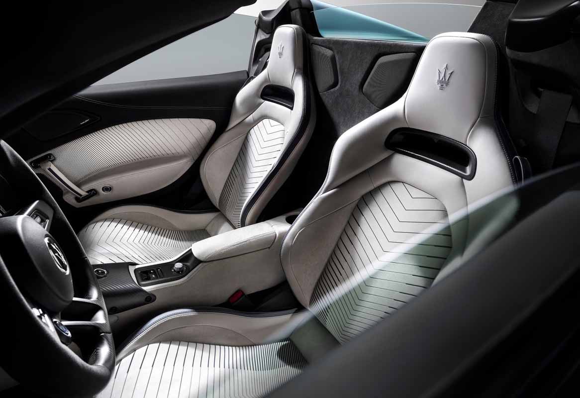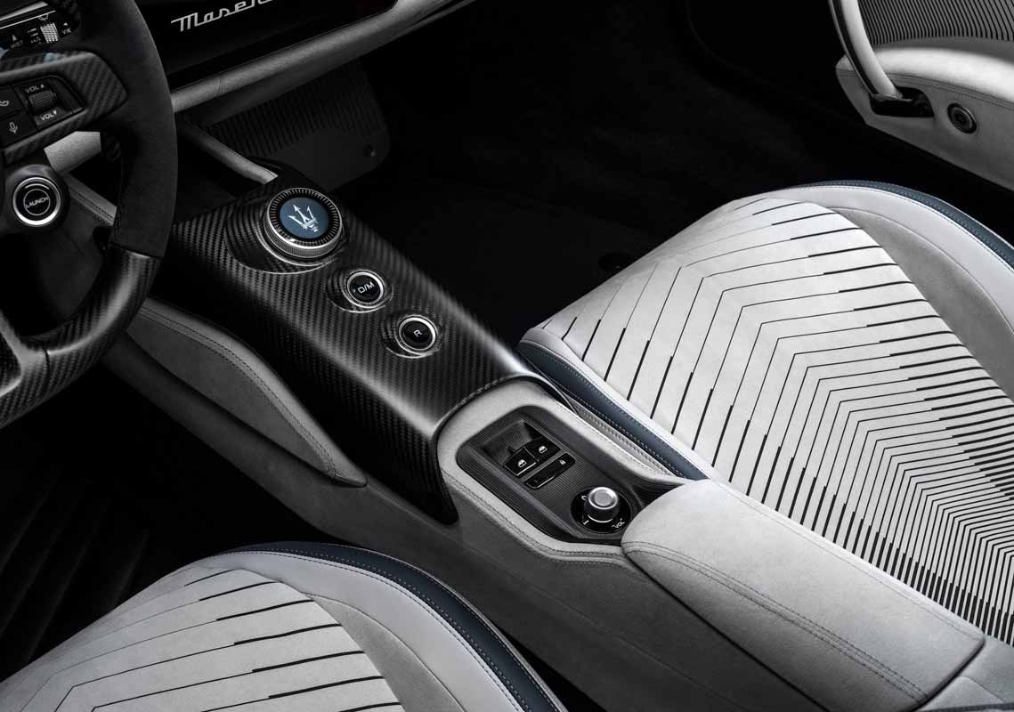 The steering wheel is taken from the MC20, developed and designed with input from Andrea Bertolini, Maserati Reference Driver and former World Champion in the MC12. A thicker steering wheel was chosen to maximise ergonomics and the sporty ‘feel’.
