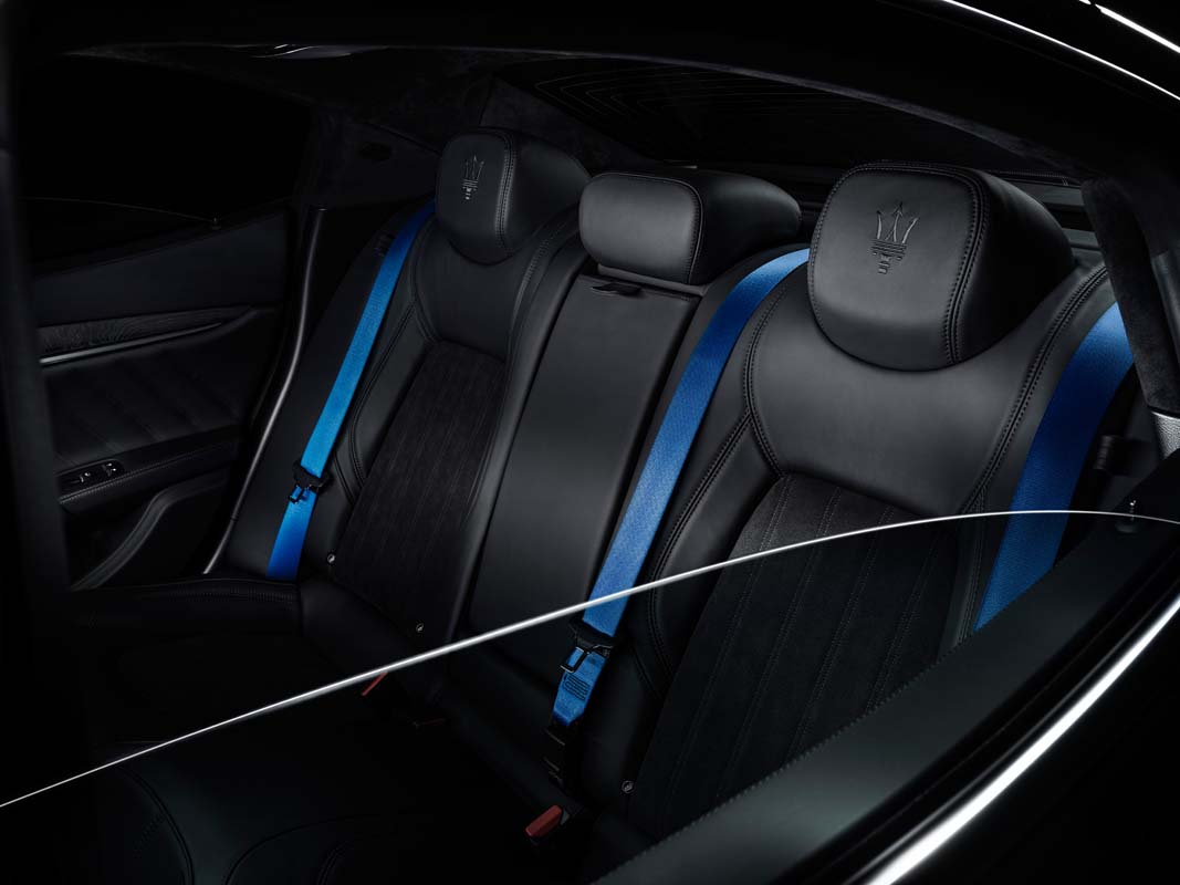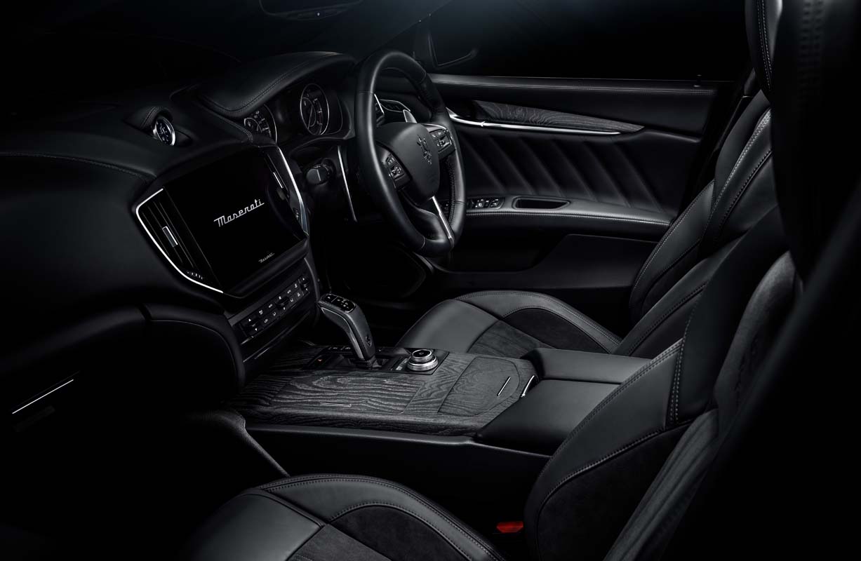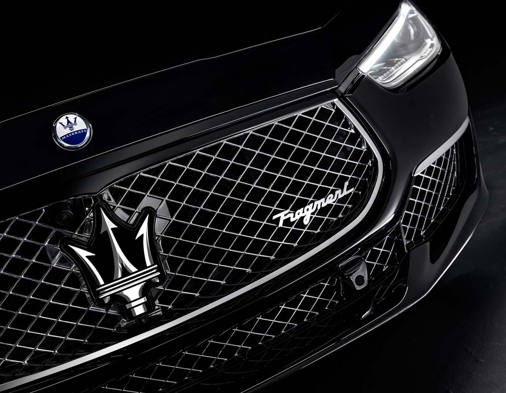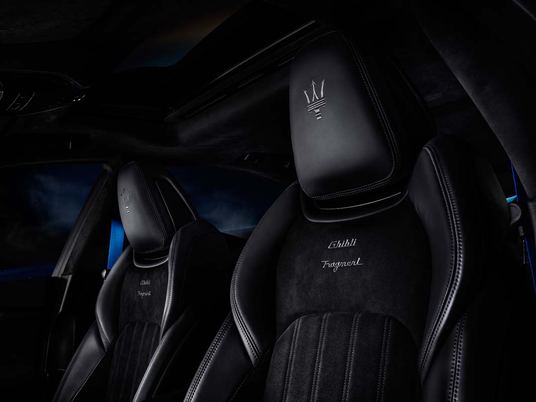 The uniformity of colour applies not only to the exteriors but also to the body-colour wheels and handles. The interiors, on the other hand, are in premium leather and Alcantara, with contrasting silver inserts for the vertical stitching and the Trident on the headrests. The seat belts are dark blue. The front grille is the iconic detail of this partnership: Fujiwara’s metropolitan style is reflected in a specific grille and in the logo, adapted uniquely for this edition. To complete the exteriors, Ghibli Operanera and Ghibli Operabianca are fitted with 20” Urano matte black wheels and a specific badge with the Fragment logo on the C pillar.