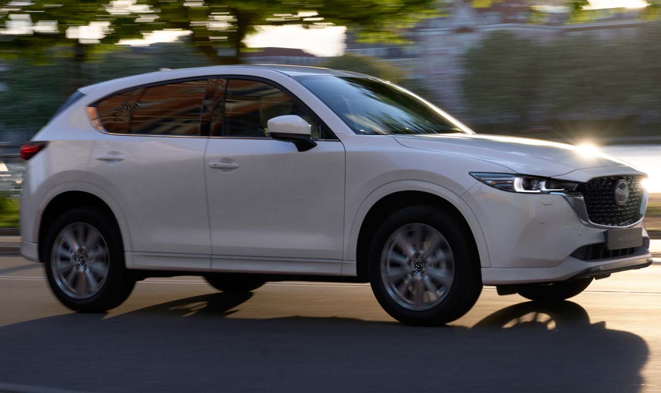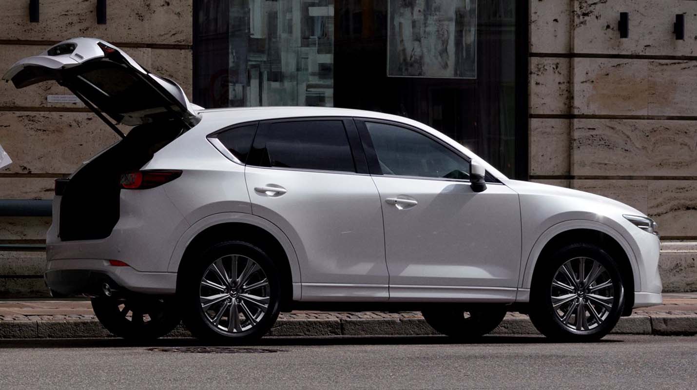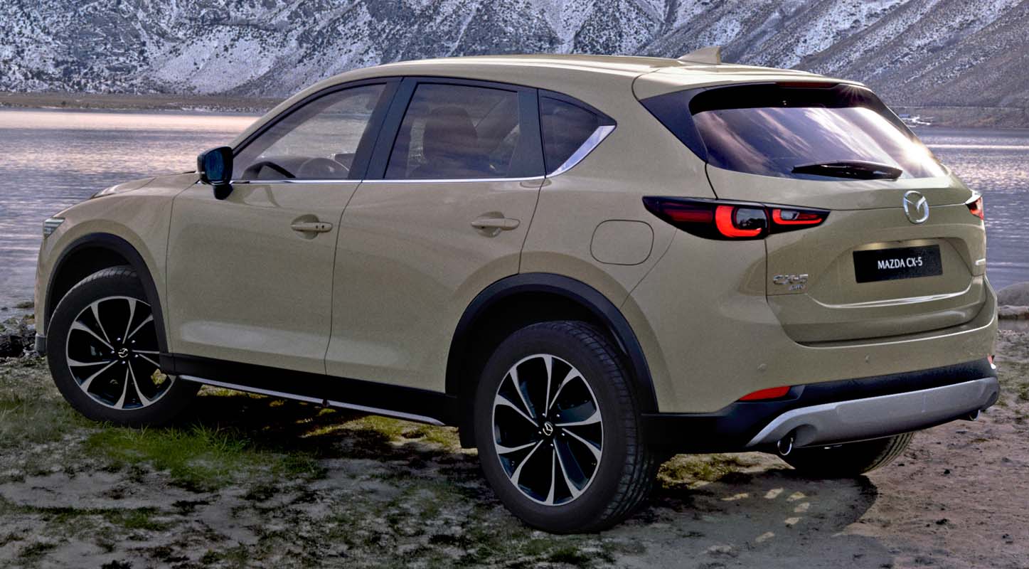 The front of the 2022 CX-5 features a powerful new, more three-dimensional grille and signature wing design. Both front and rear lamp clusters have also been restyled, and new exterior colour, Zircon Sand, added. Three new model grades incorporate subtle differences to define their distinctive characters.