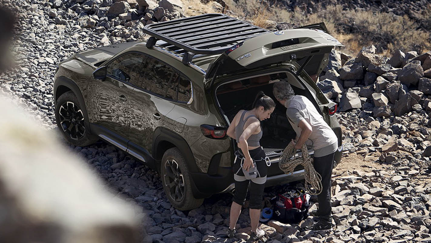 To further support Mazda CX-50’s presence in the outdoor space, its designs are more than just beautiful, they are also functional. While the interior provides comfort to all passengers, the cargo space is thoughtfully designed to help support and enable outdoor activities. The vehicle’s and length are ideal for easily loading and securing common outdoor equipment. Additionally, the high strength roof rails and reinforced b-pillars and door jambs add to the usability of securing equipment on the roof of Mazda CX-50. This all-new vehicle will help encourage customers to explore the outdoors without having to compromise on distinct designs or dynamic driving.