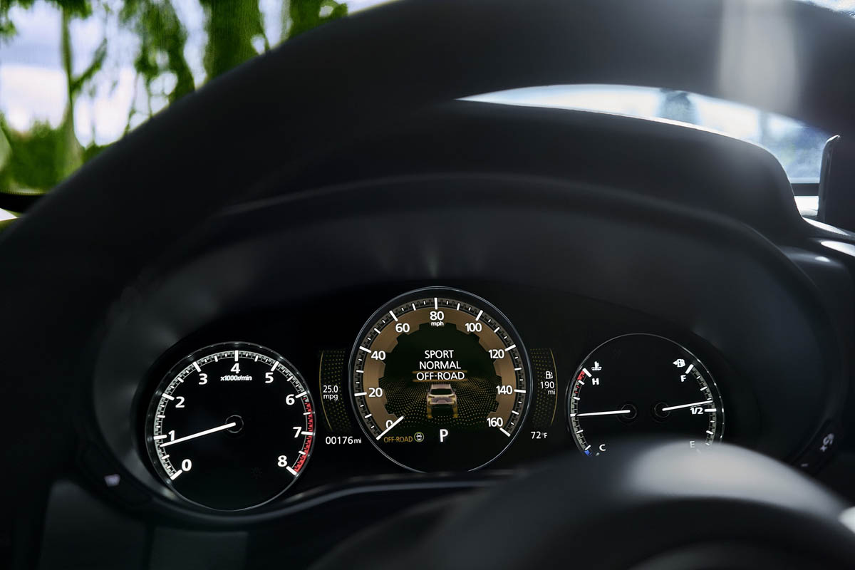 The CX-50 creates a new styling expression in the Mazda lineup that blends the brand’s striking Kodo design with an outdoor capable presence that respectfully interacts with the surroundings. The sleek, long silhouette and wide stance help give the vehicle dynamic proportions that balances design elements that are geared toward outdoor ruggedness. As expected with any current Mazda, the interior of CX-50 is well-crafted and features a layout focused on the driver. Blended seating materials and details inspired by technical, modern outdoor gear all help create a welcoming atmosphere fitting for both adventurists and those just starting their journey into an active lifestyle. A new panoramic moonroof, a first for Mazda, helps the occupants feel more connected to nature. The CX-50 will also debut new color options, such as Zircon Sand exterior paint and an available terracotta interior color.