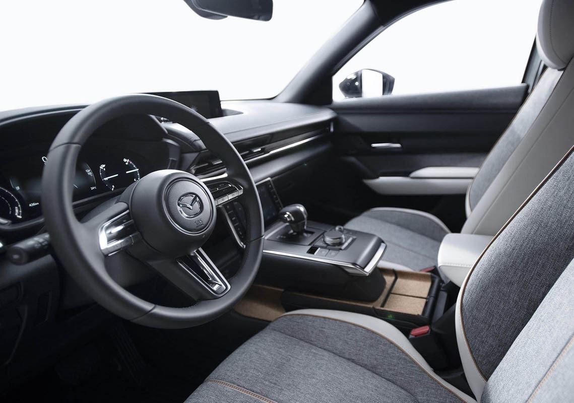 Customers opting for the standard MX-30 interior are offered a combination of high-quality Black and Light Grey fabrics paired with natural tone cork.