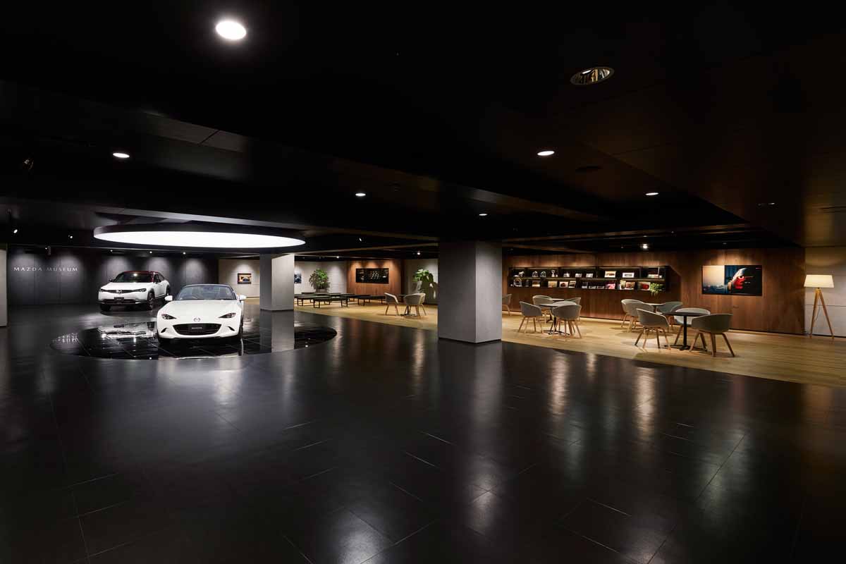 With a monotone color scheme coupled with warm lighting and wood surfaces, the new Mazda Museum’s interior and exterior were all designed in accordance with the latest Mazda brand design concept, providing an elegant yet cozy space for visitors.