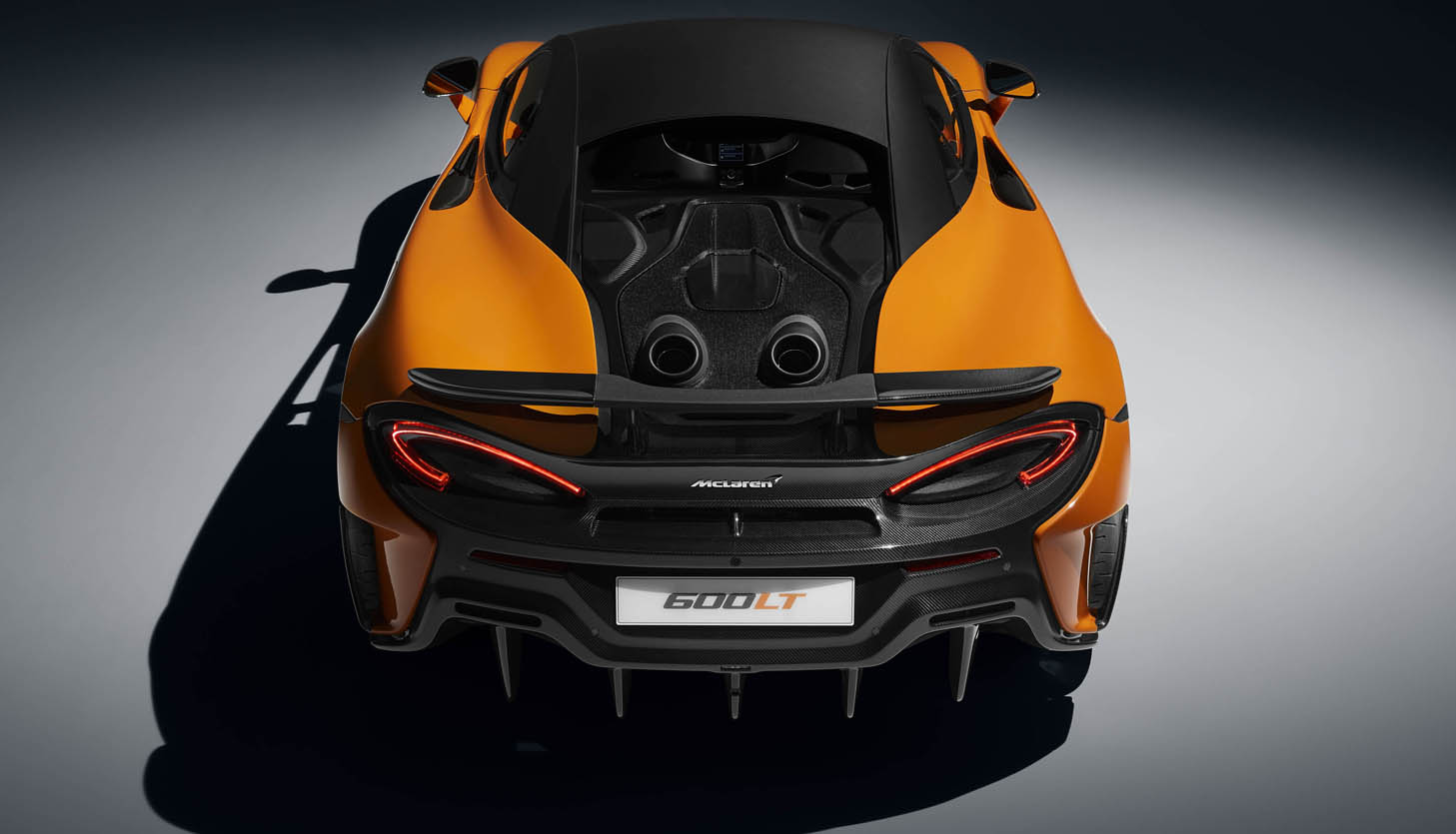 Showcasing the depth of engineering modifications to the 600LT, the bespoke top-exit exhausts contribute a significant weight reduction as well as aiding enhanced engine response and enabling improved powertrain cooling. The exhaust system also delivers an aerodynamic advantage through packaging improvements around the rear bumper and diffuser: rather than being routed through to the rear of the vehicle, the new top-exit exhaust pipes vent straight upwards and out to provide an effective cooling solution. Supporting the heat evacuation is a revised carbon fibre rear deck with a fine mesh, creating a significantly greater open area and helping to draw hot air out from the engine bay and high-temperature radiators. The same intricate mesh features within the rear diffuser and rear light clusters aid engine bay cooling, with additional venting beneath the McLaren badge.