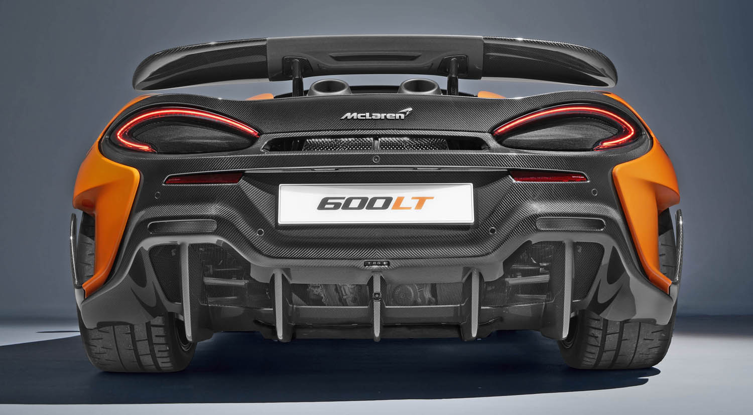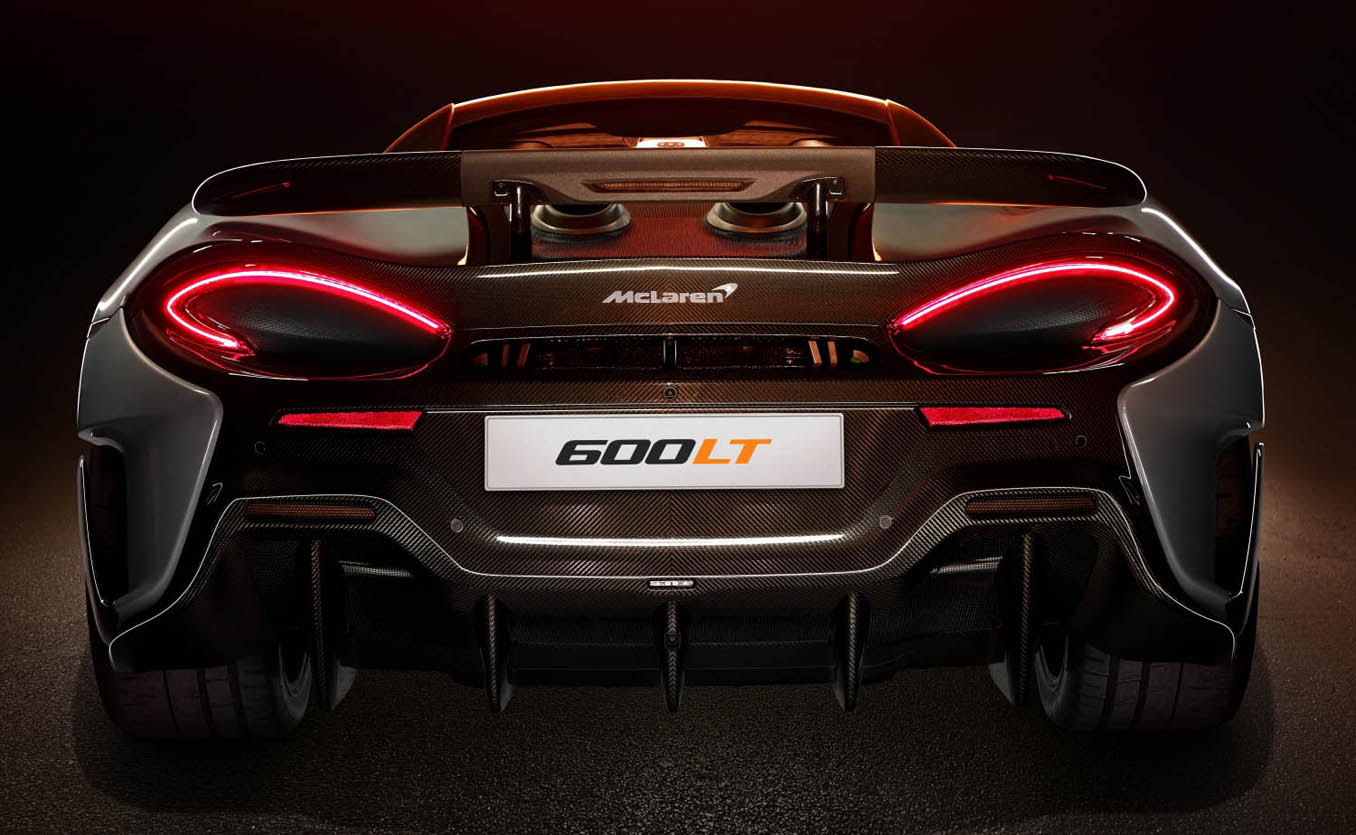 The new carbon fibre rear diffuser is wider, taller and has deeper vanes than other Sports Series models. Starting under the rear axle and further enhanced because of the physically longer rear of the 600LT, the diffuser is much more powerful and as it increases in creates a low-pressure zone that ‘sucks’ the car to the ground. The longer length also serves to diffuse the air more gradually, so instead of airflow separating from the rear of the vehicle with a hard, abrupt edge, it is diffused more gradually back into the air freestream for improved aerodynamic efficiency.