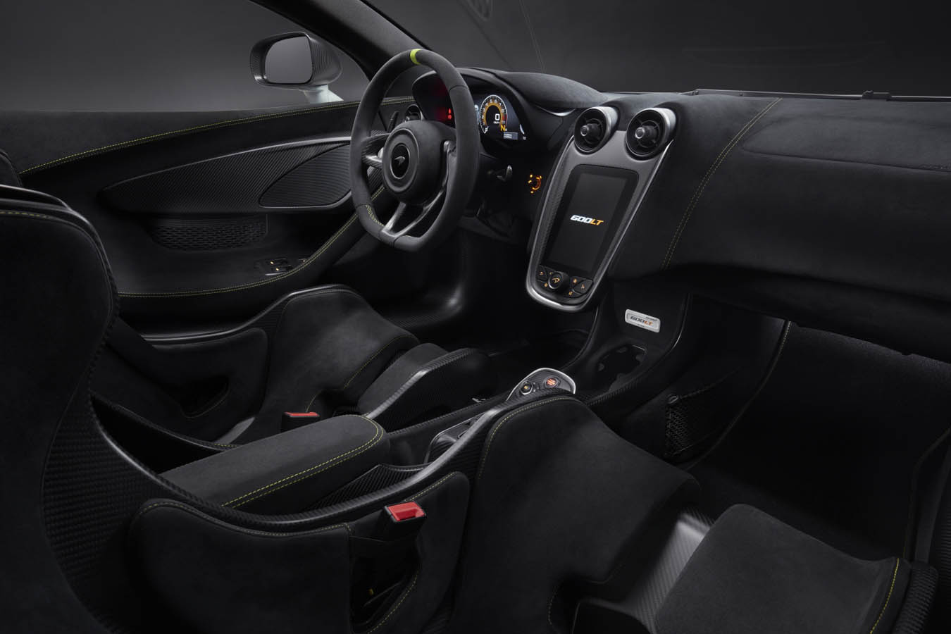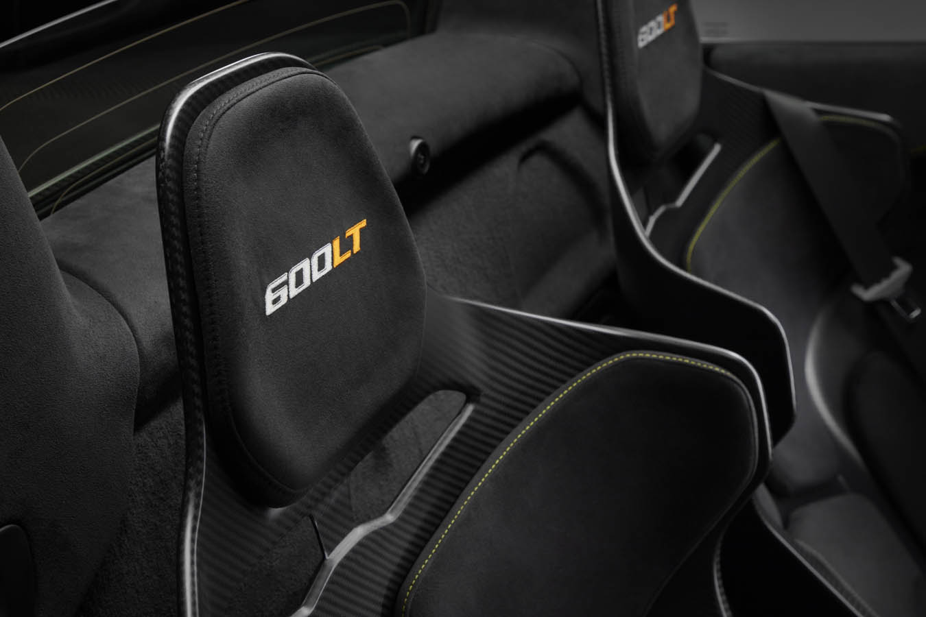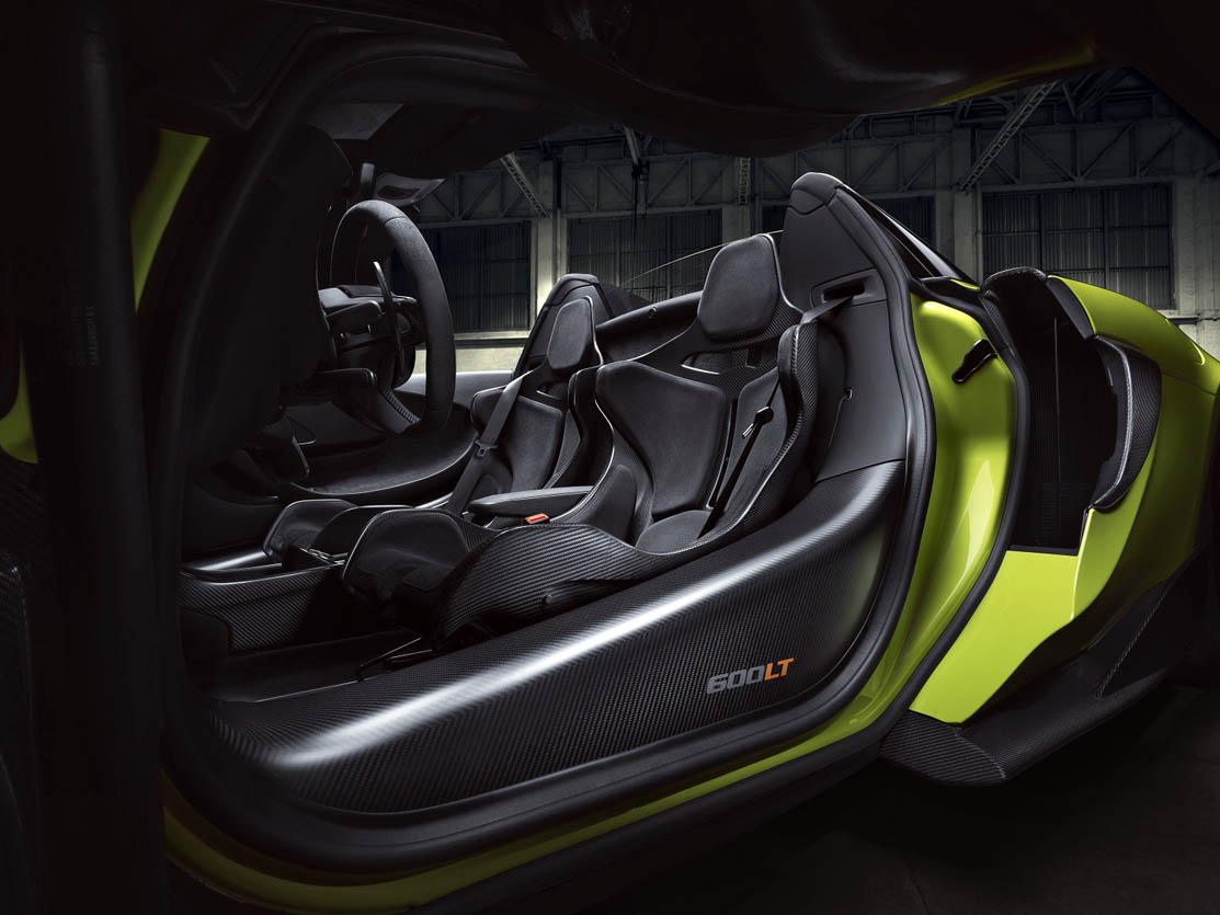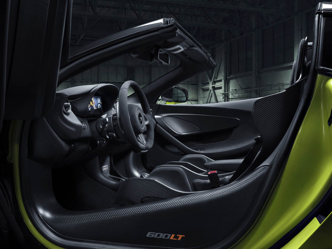 Lowering the roof of the 600LT Spider showcases the performance-orientated interior, which features lightweight Alcantara® trim and Carbon Fibre Racing Seats from the McLaren P1™ as standard. The Super-Lightweight Carbon Fibre Racing Seats designed for the McLaren Senna are available as an option, either on their own or within the MSO Clubsport Pack. Further weight-saving options and measures – including deletion of the audio and climate control systems – are available to buyers determined to shave off every kilogramme possible.