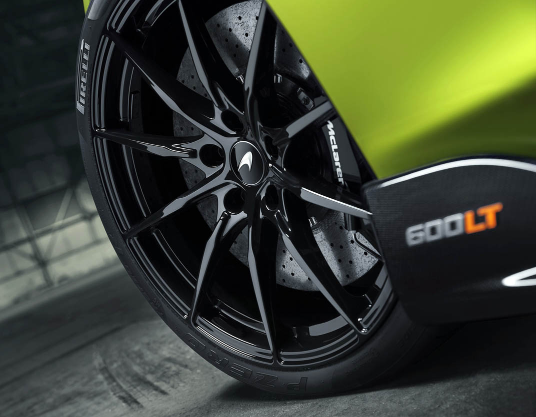 Performance is further enhanced by the lightweight carbon fibre bodywork that creates the Longtail silhouette and the same design of fixed rear wing as the Coupé which – despite the aerodynamic challenges posed by a convertible body – generates the same 100kg of downforce at 250km/h (155mph). Ultra-precise, track-focused handling is supported by a forged aluminium double-wishbone suspension system with recalibrated dampers, firmer engine mounts and a lightweight braking system. The McLaren 600LT Spider is fitted with bespoke, track-focused Pirelli P- Zero™ Trofeo R tyres and the driving experience is further enhanced with quicker steering and sharpened responses from throttle and brake pedals.