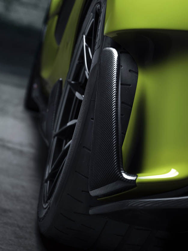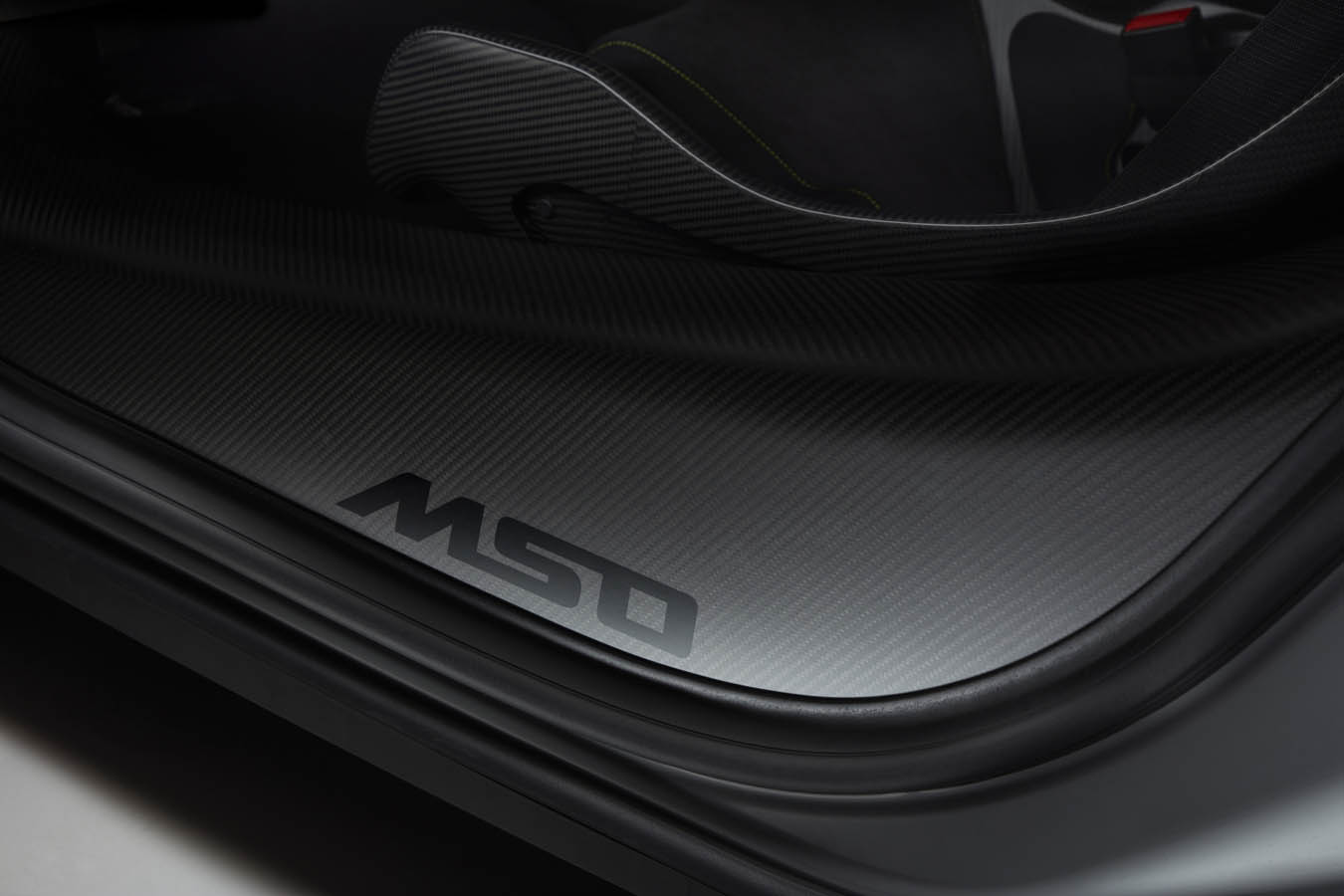 ويُعتبر الرمادي لوناً مثالياً لتخفيف الوزن، كما يوفر خلفيةً مثالية لإبراز لمسات اللون الأخضر المعدني المتلألئة. ووقع اختيار المركز على اللون الأخضر ليوحي برابطٍ لوني يعود بالذهن إلى سيارة 576أل تي، والتي كان الأخضر أحد الألوان الرئيسية. وانحصر توفرها، منذ ذلك الحين، كأحد ألوان MSO Bespoke.