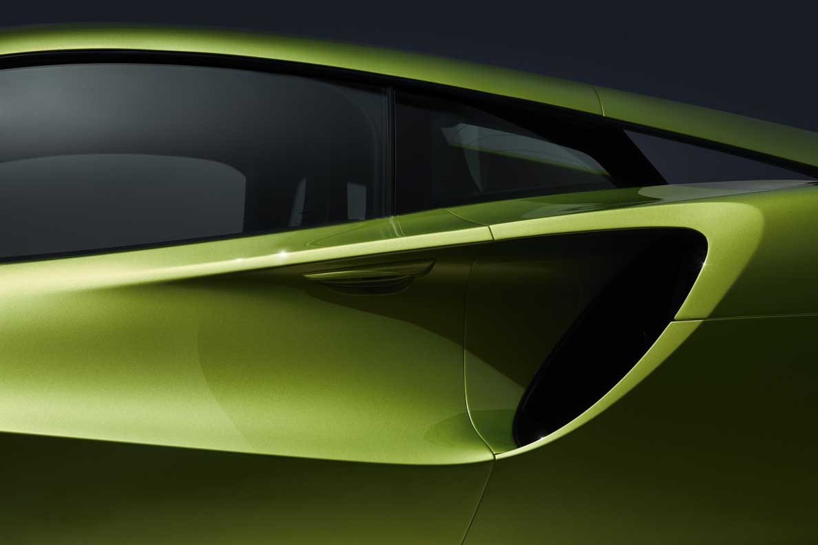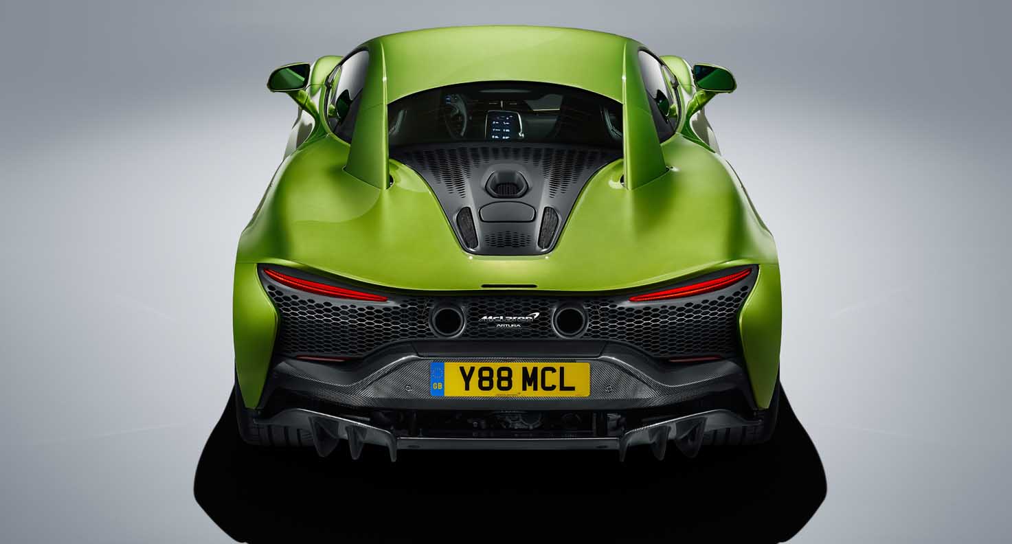 The Artura’s sense of purity is achieved partly through the reduction in shutlines, which creates a visual cleanliness that emphasises the bold form language. The air intakes in the nose and doors cut deeply into the body, while the elegant flying buttresses appear to ‘pool’ where they fall from the single-piece aluminium roof to meet the bodywork, creating a graceful visual effect in the remarkable one-piece rear clamshell.