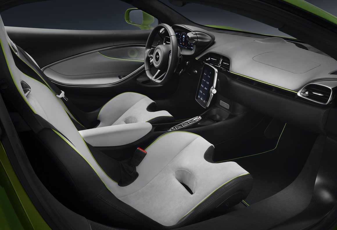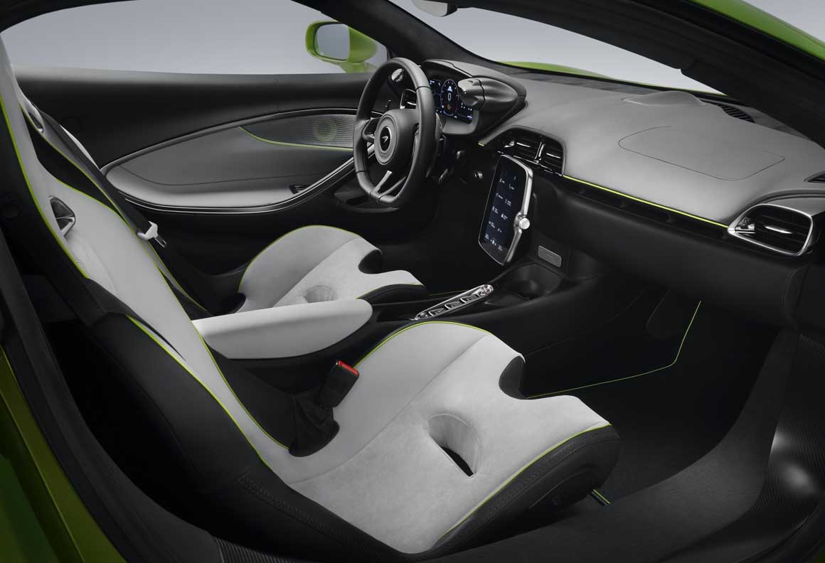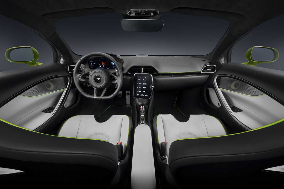 An all-new McLaren infotainment and connectivity system (MIS II) utilises two high-definition screens. The interface is built on all-new software and bespoke hardware to deliver a smartphone level of responsiveness and is also capable of smartphone mirroring. MIS II includes updated versions of familiar McLaren apps including McLaren Track Telemetry and Variable Drift Control, and also features a redesigned navigation map in the instrument cluster which focuses on key information to minimise driver distraction. A stealth mode on the main binnacle hides non-essential content, reducing distractions and promoting full concentration on the road ahead.