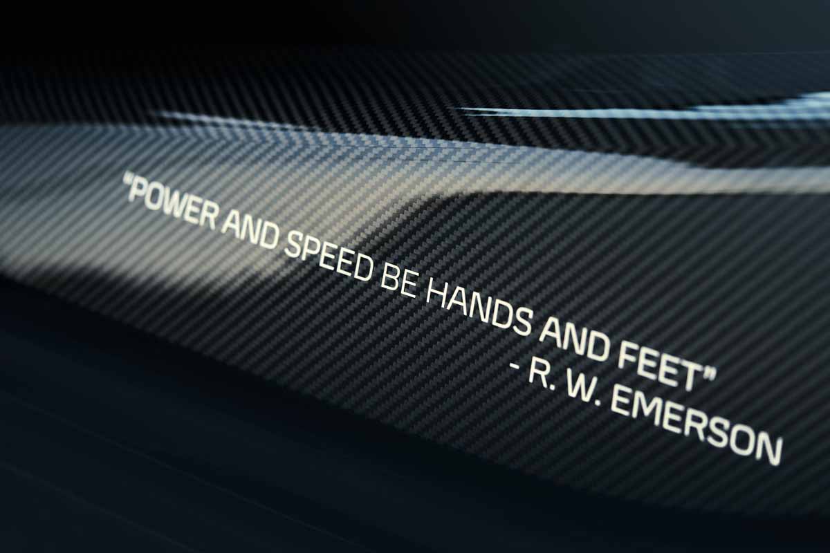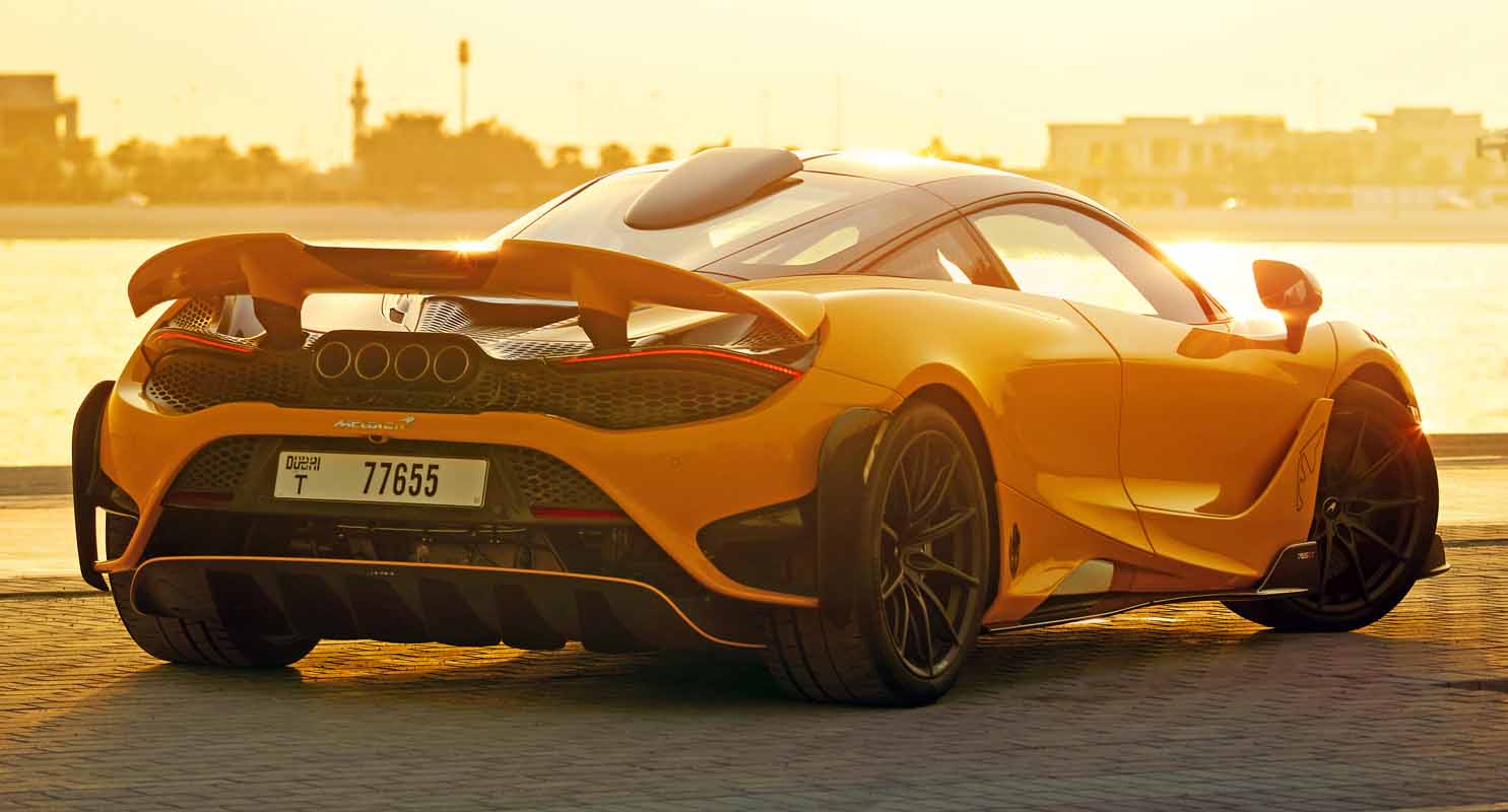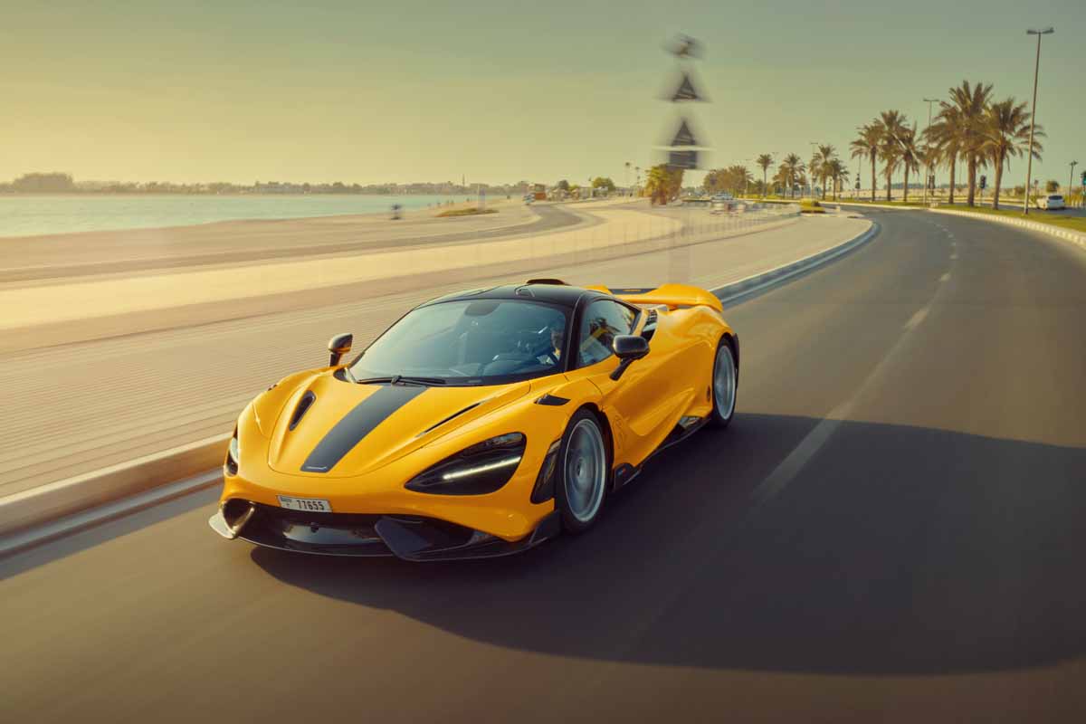 The exterior of this unique McLaren 765LT features a number of bespoke personalisation options such as different coloured wheels on each side, as well as specially formulated paint job named Ghalya Yellow, after the owner’s eldest daughter. The door panels of the ground-breaking supercar also feature the layouts of the iconic Yas Marina and Dubai Autodrome circuits, as a homage to the world class motorsport venues located in the United Arab Emirates. The desire to personalise is also reflected inside the car’s track-focused cabin with the owner’s logo embossed on the headrests, as well as the words ‘push for speed’ engraved on the car’s accelerator pedal.