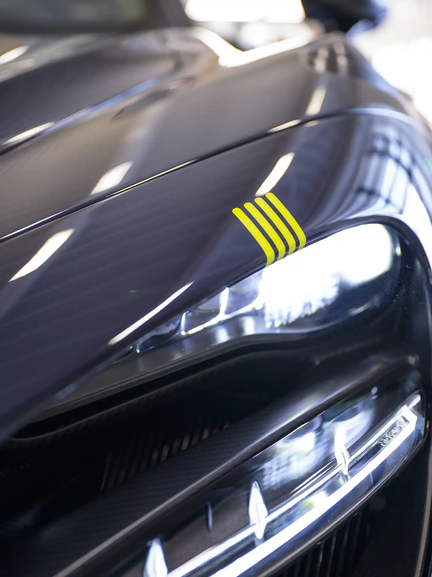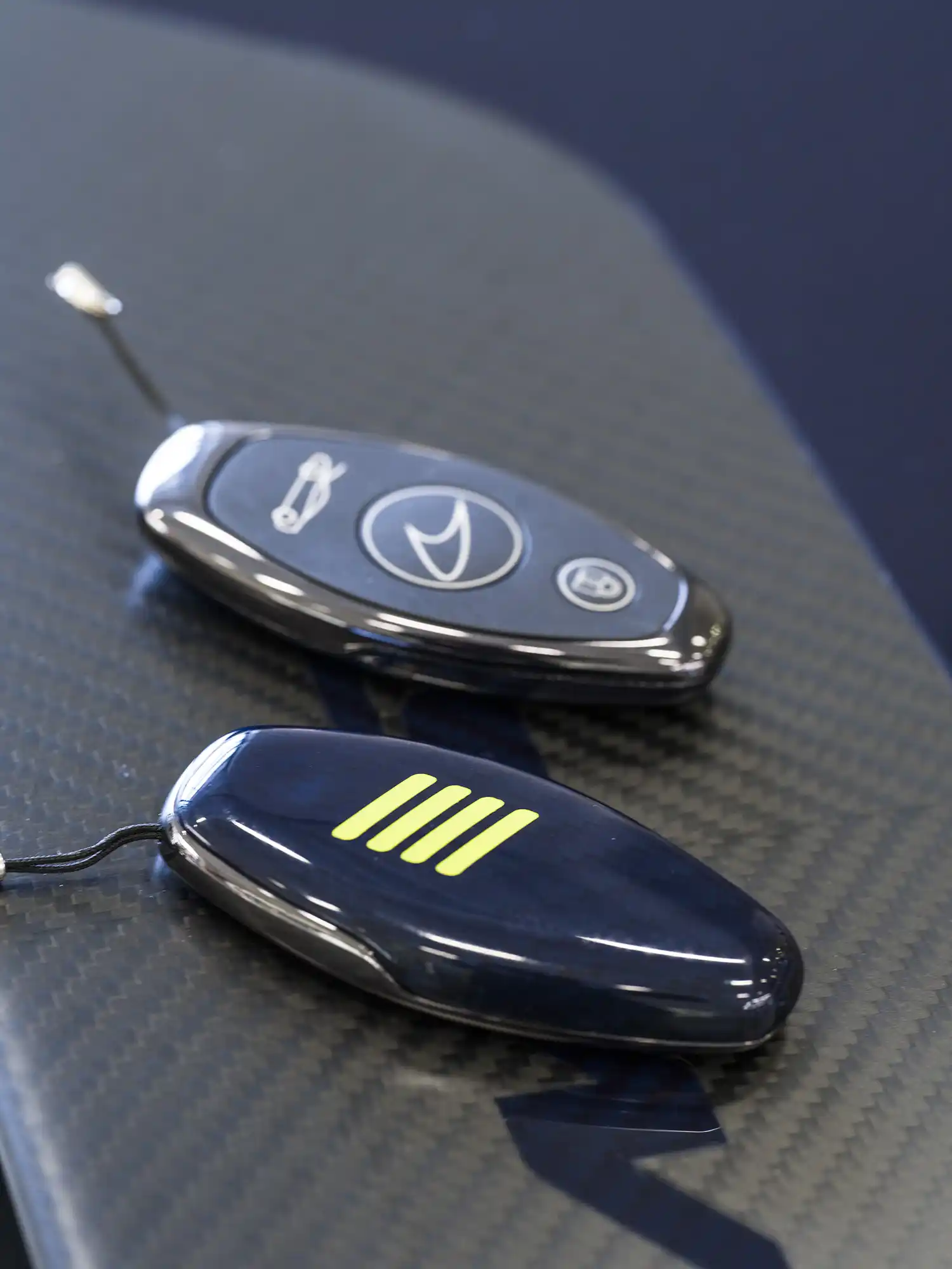 The personalisation is complete with the keyfob finished in Gloss Blue Tint Visual Carbon Fibre with Lando Graphic in Lando Yellow.