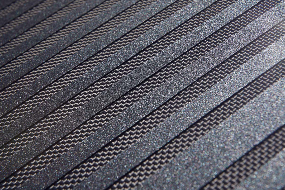 Referring to large scale print-outs of the renders, the livery masking was completed by two specialist paint technicians. This had to be completed on the built car, with wheels fitted, to ensure accurate cross-panel alignment of the design as it flows around the vehicle. In total, the masking of the livery required almost two kilometres of fine line-out tape to complete the initial design layout.