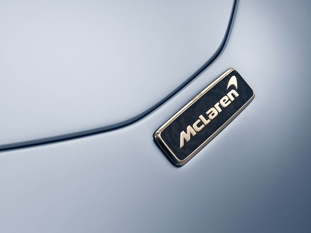 The front splitter, diffuser and side skirts are all finished in 1K Titanium Deposition Carbon Fibre. This material has just 1000 fibres per thread, making it lighter than the 3K alternative and allowing the adoption of a Jacquard weaving process to create an intricate, bespoke pattern in the Visual Carbon Fibre elements. The titanium can additionally be anodised in any bespoke colour or used to create interwoven images, symbols or even words within the carbon – for example, the rear of the driver’s seat features the McLaren logo.