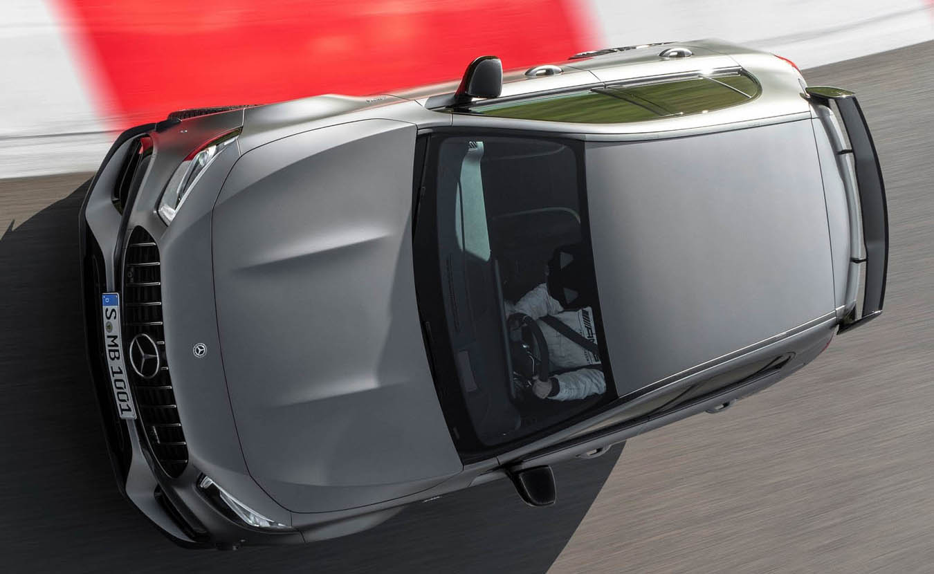 The characteristic, sporty AMG ambience is also enhanced by the sports pedal cluster of brushed stainless steel with rubber studs, black floor mats with AMG lettering and a surround in a nubuck leather look, the black fabric roof liner and AMG front entry sills in brushed stainless steel with “AMG” lettering.