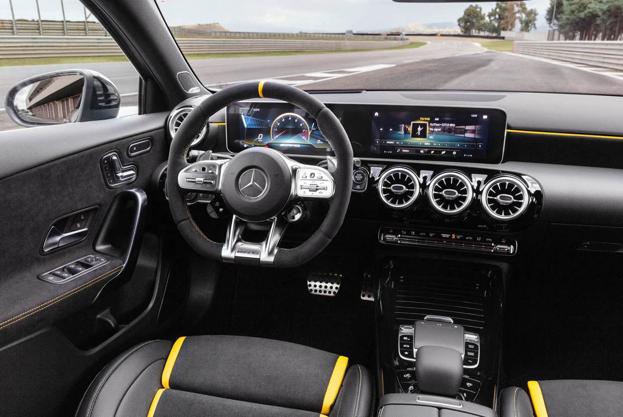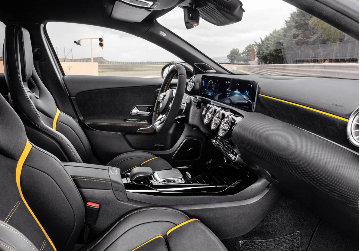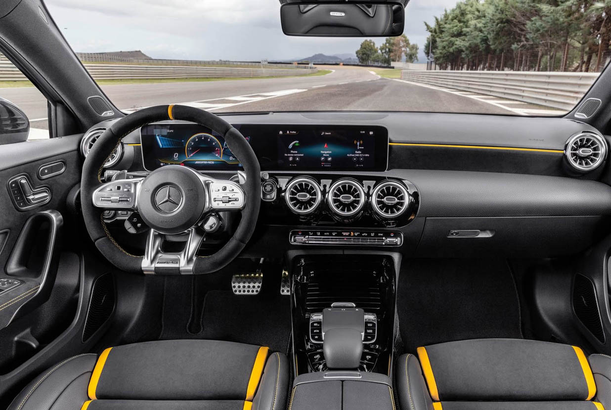 This positioning logic has already proved successful for the AMG Performance models with a V8 engine, and meets individual customer wishes even better. The new compact sportscars absolve the sprint from zero to 100 km/h in record time: the A45 S 4MATIC+ requires only 3.9 seconds (CLA45 S 4MATIC+: 4.0 seconds), while the basic A45 4MATIC+ model absolves this discipline in 4.0 seconds (CLA45 4 MATIC+ in 4.1 seconds). The top speed of the basic models is electronically limited to 250 km/h, while the S-models are capable of up to 270 km/h ex factory. With the optional AMG Driver’s Package, the top speed can also be increased to 270 km/h for the basic variants.