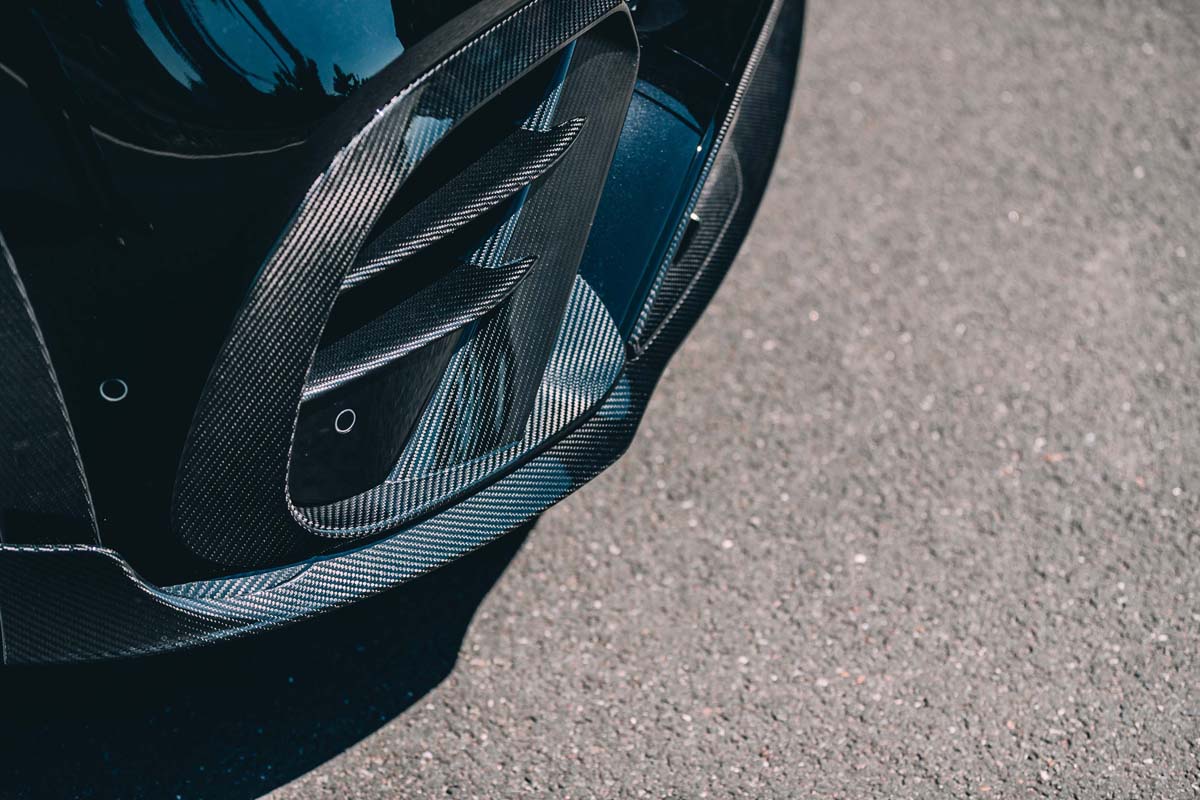 In order to achieve a peak output of 588 kW / 800 hp (789 bhp) at 5,900 rpm and a peak torque of 1,000 Nm (737 lb-ft) at a low 3,500 rpm, special turbos with larger compressor unit, modified core assembly and reinforced axial bearings replace the two production turbos. They produce a maximum boost pressure of 1.6 bar.