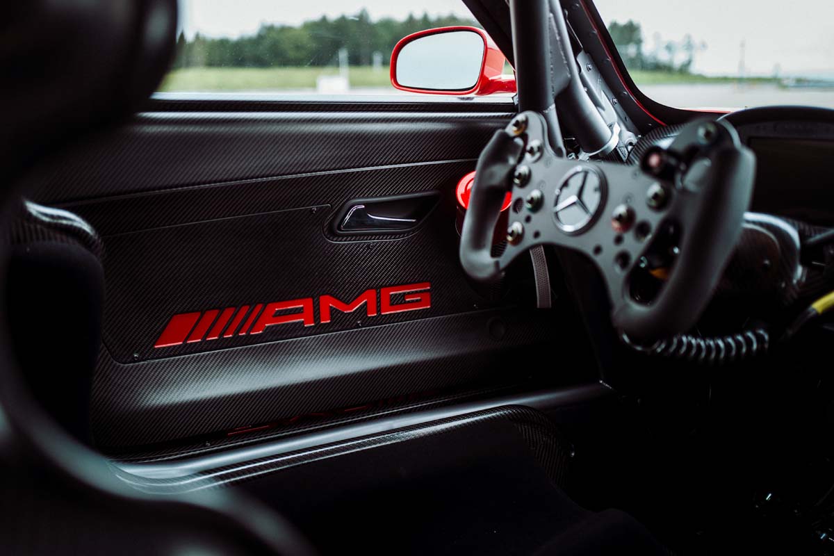 | AMG logo in door panels and entry strips painted red |