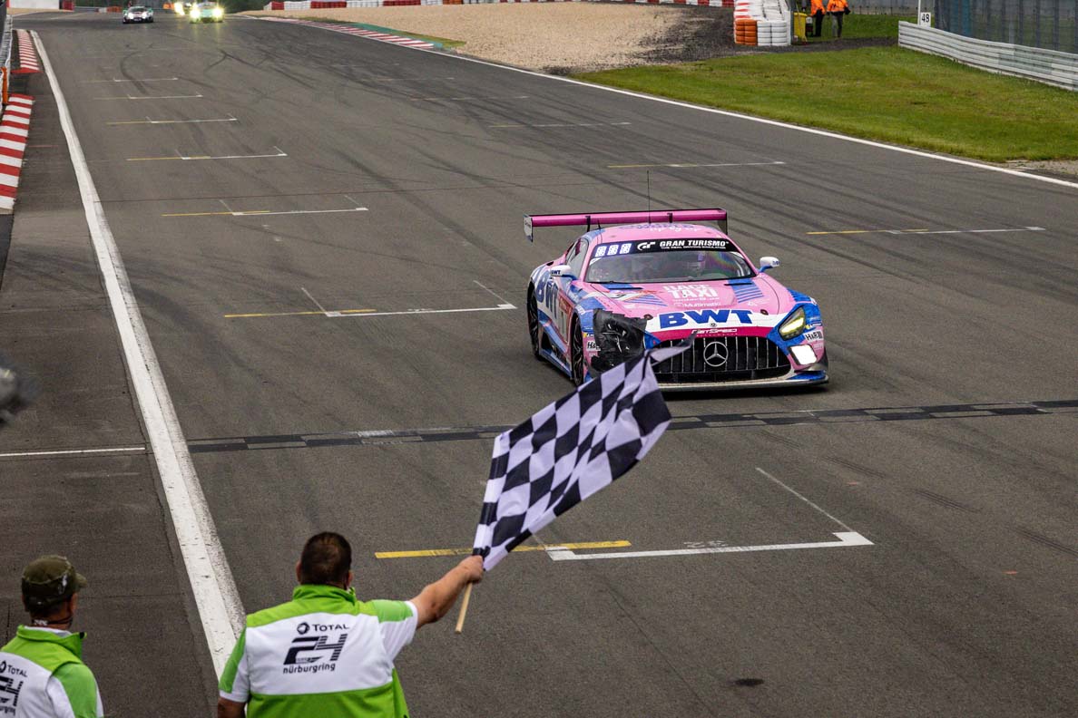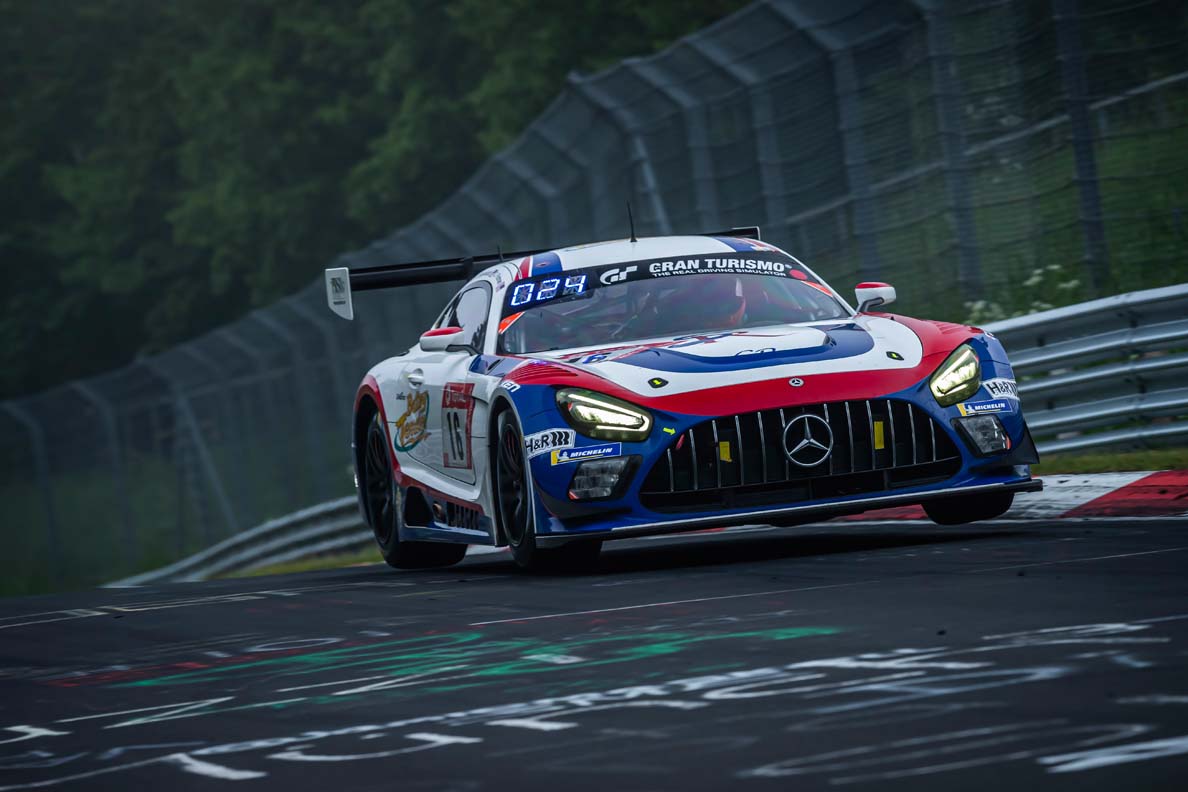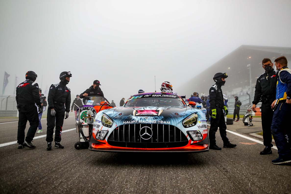 On Sunday morning, continuing poor visibility prevented a swift restart. Once the race resumed at noon with all the internal time gaps reduced to zero, an entertaining sprint race unfolded at a dry track. Three laps after the restart, there was an early decision to the disadvantage of Mercedes-AMG: in the sector of the Hohenrain chicane, a car that was about to be lapped tangled with Engel, who was in second place. That caused Engel to slide into the barriers – the end of the race for the #4 Mercedes-AMG GT3 that had been dominating the race for a long time. The HRT sister car with starting number 6, driven by Patrick Assenheimer, Nico Bastian, Hubert Haupt (all GER) and double starter Engel, also had to retire early. On course for a top ten finish, Haupt crashed out near the Klostertal corner and was unable to continue.