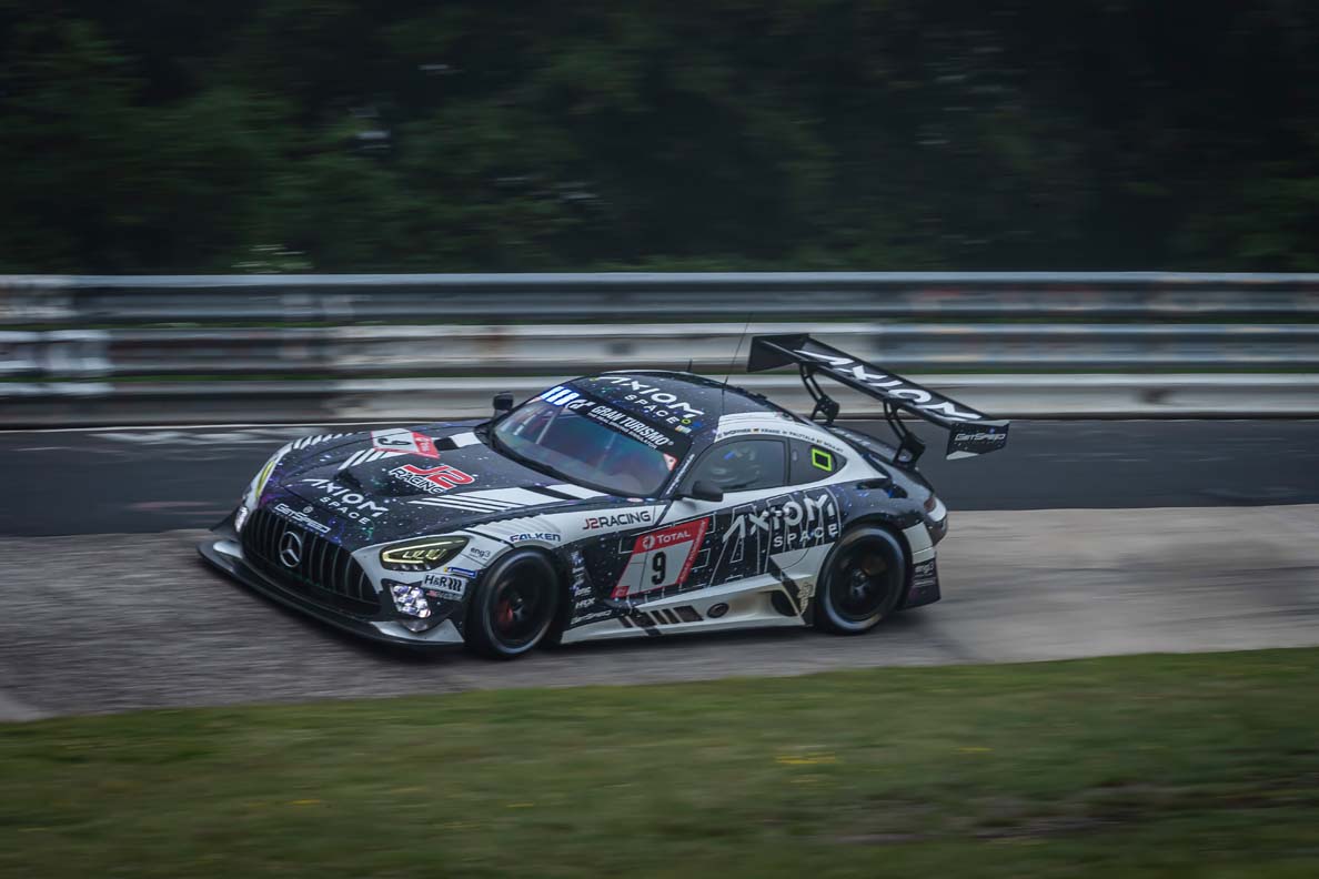 In the SP-X class for special cars, Philip Ellis (SUI), Dominik Farnbacher, Tim Scheerbarth (both GER) and Darren Turner (GBR) from the Space Drive Racing team put in a solid performance: the #25 Mercedes-AMG GT3, equipped with a novel steer-by-wire technology, finished the race in 16th place overall as the best-placed car in the SP-X category. In SP8T, two Mercedes-AMG GT4s staged a duel for victory: after 54 laps, the #36 BLACK FALCON Team TEXTAR car came out on top and demoted the #37 Schnitzelalm Racing entry to second place in cass. In SP10, the Schnitzelalm Racing sister car, the #34 Mercedes-AMG GT4 driven by Marek Böckmann, Marcel Marchewicz, Tim Neuser and Reinhold Renger (all GER) secured victory.