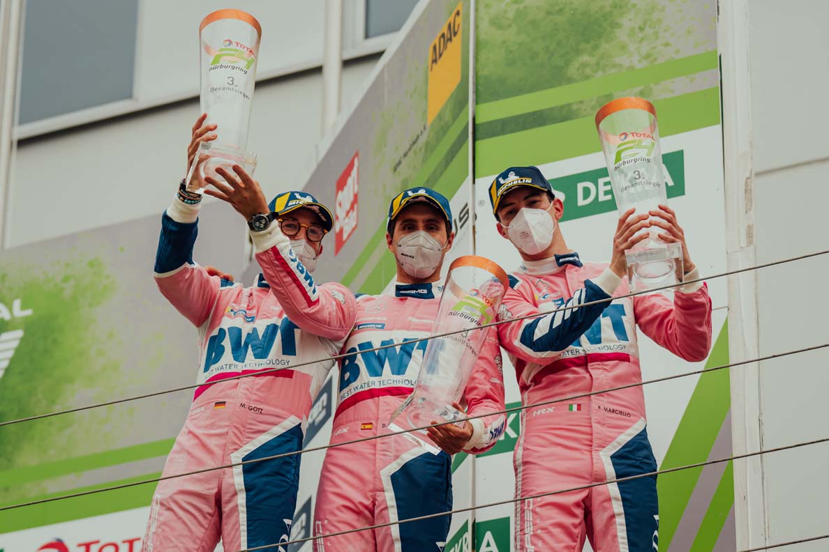 In the closing stages, things went considerably better for the two Mercedes-AMG GT3s in BWT livery. In the #7 Mercedes-AMG Team GetSpeed car, Juncadella worked his way up into third place with top-notch lap times. After a final pit stop with driver change, Marciello rejoined the race in fifth place. In the remaining 30 minutes, the Italian kept the pressure up. On the penultimate lap, the 26-year-old finally secured third place by virtue of a spirited overtaking manoeuvre and defended his position until the finish. With the #8 car, final driver Gounon brought seventh place for Mercedes-AMG Team GetSpeed home after 59 laps.