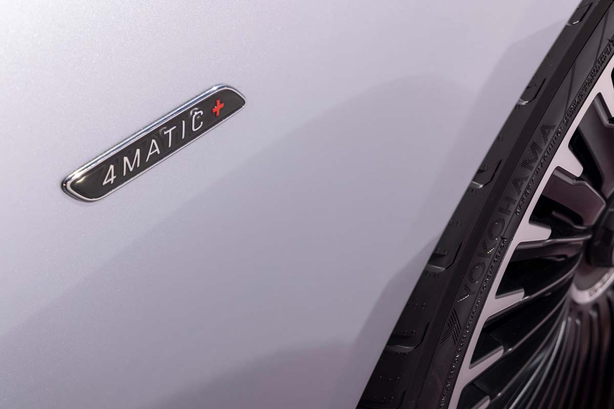 The power of the battery-powered motors is brought to the road by the standard AMG Performance 4MATIC+ fully variable all-wheel drive system. The system continuously distributes the drive torques between the front and rear axles, depending on the driving situation: compared to a mechanical all-wheel drive system, the electro-specific system ensures a significantly faster response. The torque is checked 10,000 times per minute and adjusted if necessary. The torque distribution depends on the selected driving mode: in “Comfort” mode the focus is on maximum efficiency, while in “Sport” and “Sport+” the torque is more rear-biased in the interests of greater lateral dynamics.