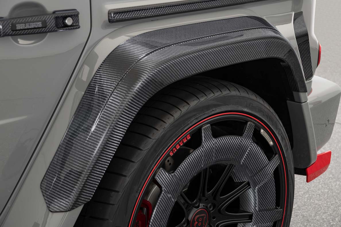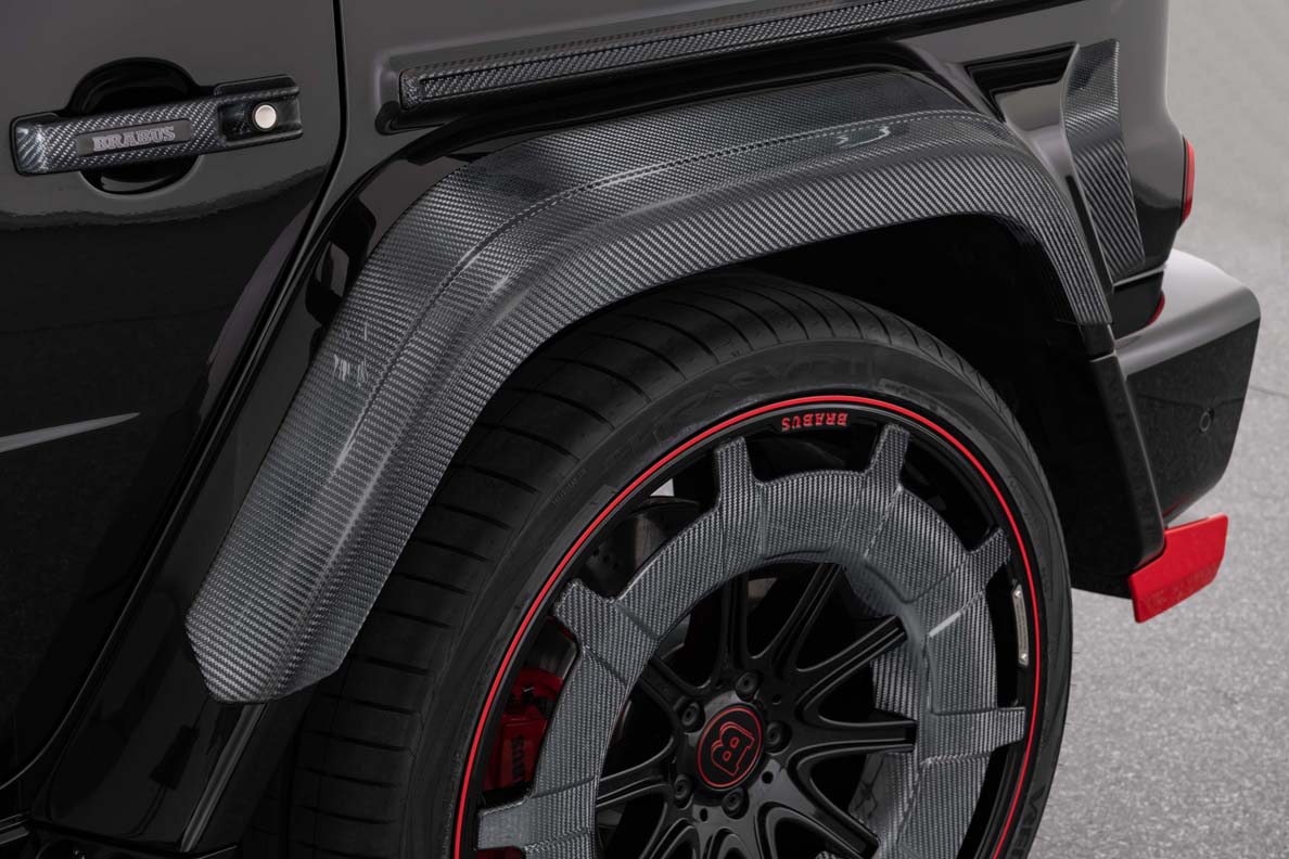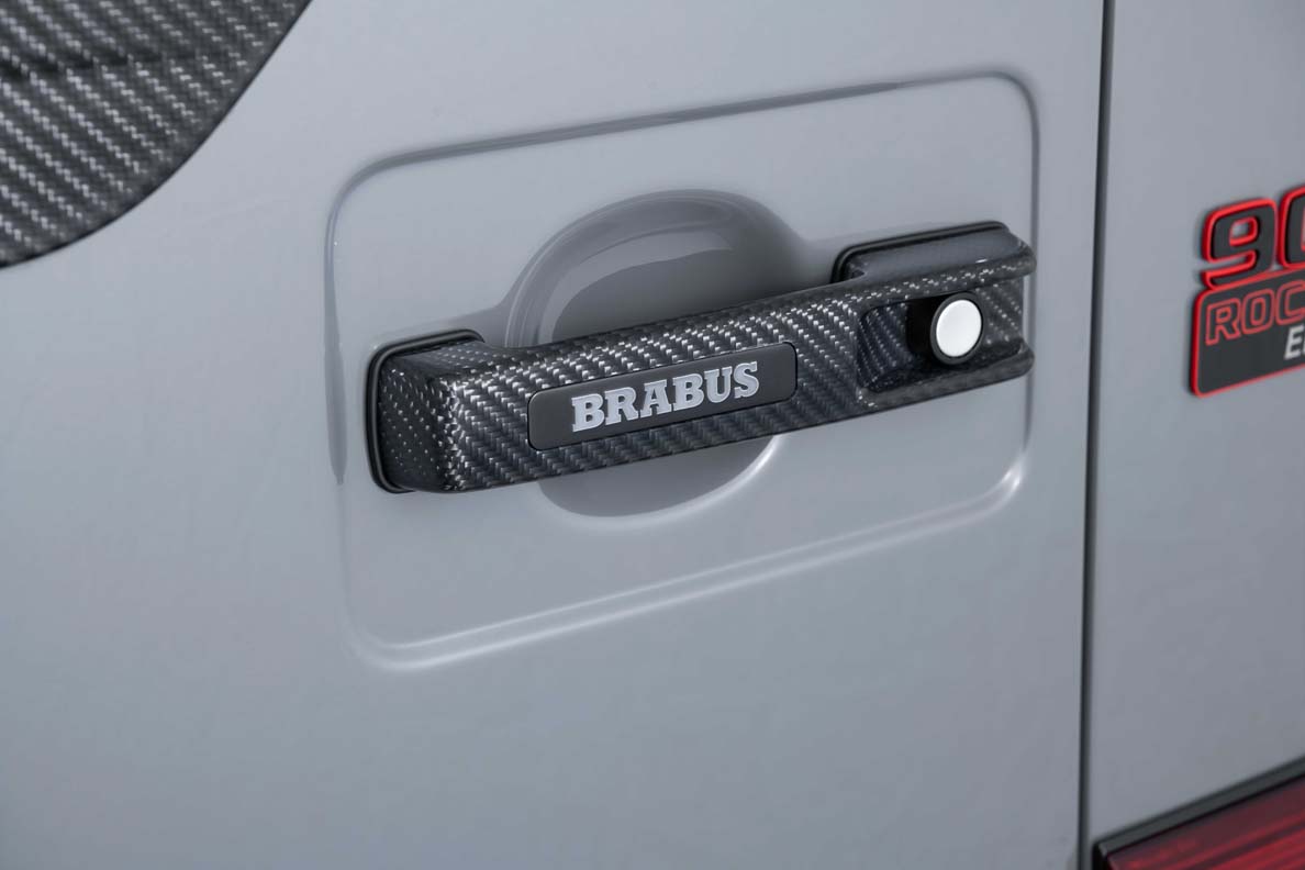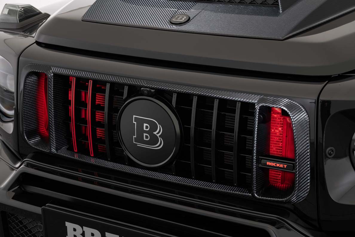 Defining the bold looks of the brand new BRABUS 900 Rocket Edition is a tailor-made, newly developed variant of the signature BRABUS Widestar exterior concept. Designed not only to give the SUV its extra athletic appearance but also its hyperspace aerodynamics, this purpose-built design features a special, all-carbon front spoiler enhanced by custom side flaps which reinvents the car’s iconic face while reducing front-axle lift at its staggeringly high speeds which, in turn, results in immaculate handling stability. In the rear, an emphatically sporty, roof-mounted wing as well as a custom diffuser maximize the full aerodynamic potential of the all-new BRABUS 900.