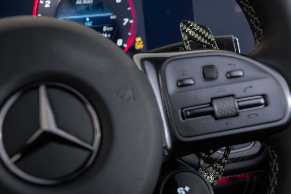 The high-gloss carbon trim in the cabin emphasizes the extra sporty flair of this special model – as do the aluminum pedals and door lock pins, as well as the stainless-steel scuff plates complete with backlit BRABUS logo, which can change color in sync with the ambient lighting. In the rear, two bucket seats with numerous comfort functions such as multi-contour adjustment, memory and integrated seat ventilation as well as heating replace the standard bench seats, rounding off the spaceship feeling of the BRABUS 900 Rocket Edition. Of course, every buyer of a BRABUS 900 ROCKET EDITION can configure their supercar individually in every detail, which naturally also includes the color scheme of the bodywork and the interior.