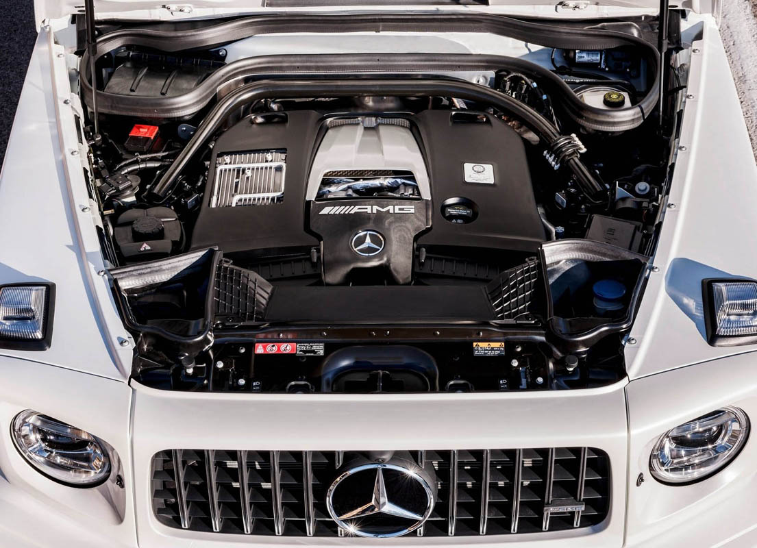 The AMG 4.0-litre V8 biturbo engine now also replaces the previous 5.5-litre V8 biturbo engine in the G63. It generates 430 kW (585 hp) in this model, and delivers a maximum torque of 850 Nm. This is available across a wide rev range between 2.500 and 3.500 rpm, and provides a sense of effortless superiority.