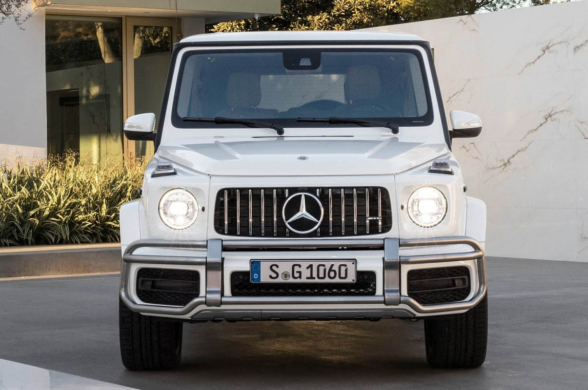 The front section of the G63 is characterized by the AMG-specific radiator grille and the AMG bumper with large side air inlets and trim in matt iridium silver. The headlamps, indicators and tail lights are in LED High Performance technology as standard. This lighting consumes less energy and has a particularly long service life.