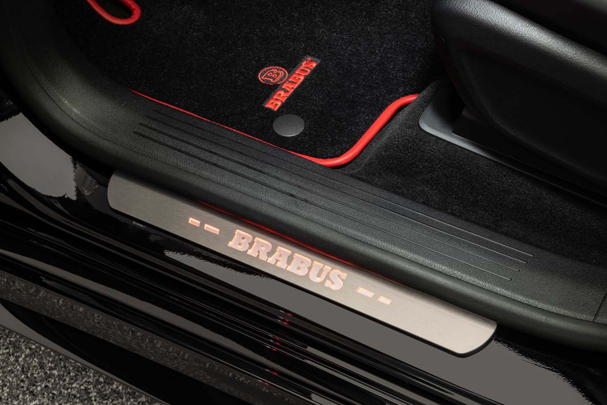 In addition, BRABUS offers further cockpit accessories ranging from aluminum door lock pins and pedals to stainless-steel scuff plates with backlit BRABUS logo that changes colors in sync with the ambient lighting of the interior.