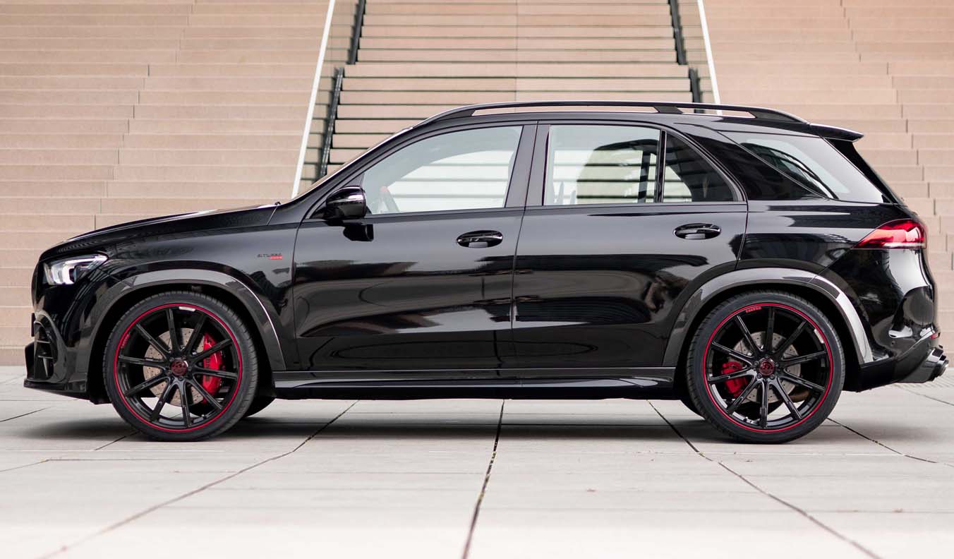 BRABUS alloy wheels for the GLE 63 come in different designs and with diameters of 21, 22, 23 or 24 inches. The most exclusive available option are BRABUS Monoblock Z “PLATINUM EDITION” hi-tech forged rims in 10Jx24 king-sized format. In concert with state-of-the-art manufacturing technology, the ten-spoke styling offers an outstanding combination of lightweight construction and maximum strength. BRABUS chose low-profile tires of size 295/30 R 24 for all four corners.