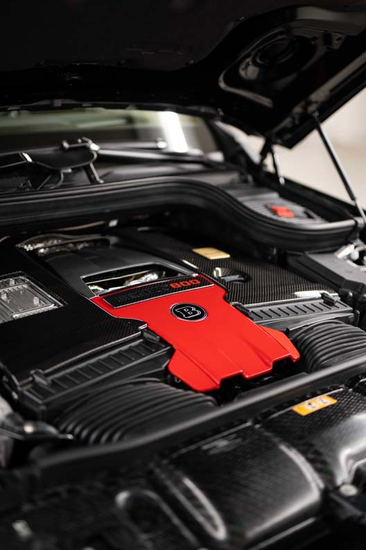 The changes to the engine hardware involve the turbocharging system. Two reconfigured BRABUS high-performance turbochargers with larger compressor unit and modified core assembly produce a maximum boost pressure of 1.6 bar.