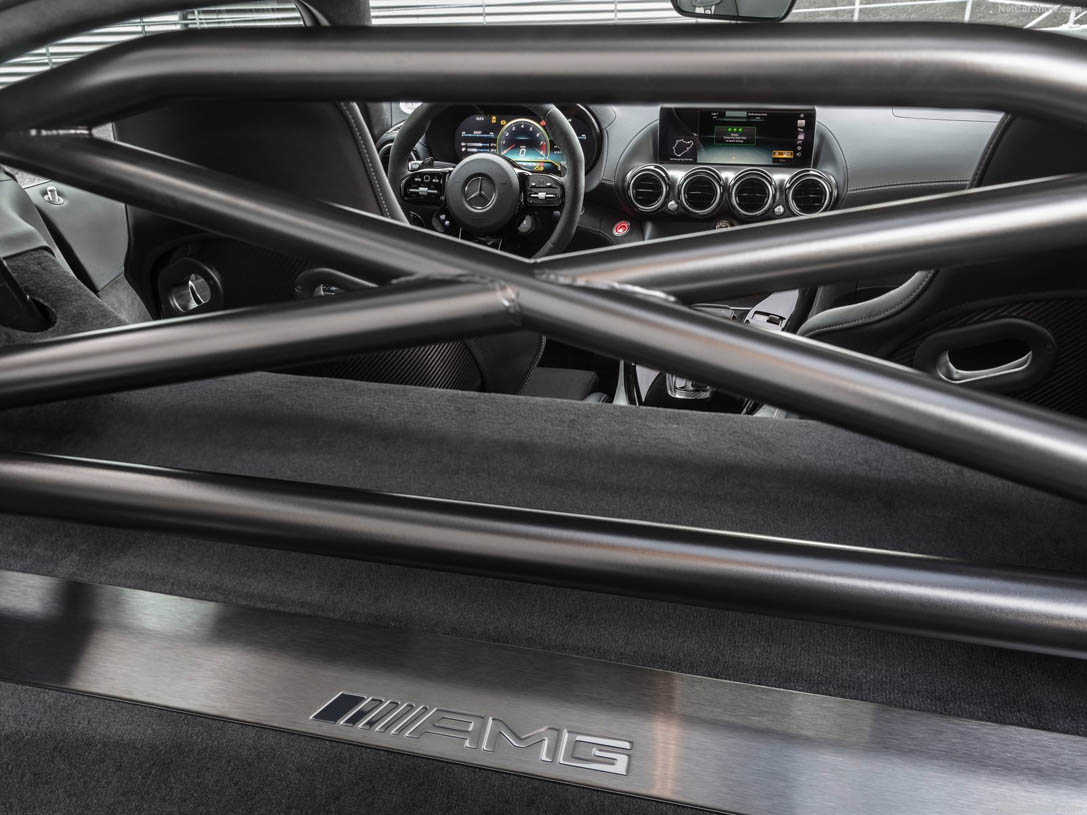 The active aerodynamics profile in the underbody, the AIRPANEL active air regulation system in the front apron and the large spoiler on the hatch, all known from the AMG GT R, are part of the standard specification. In addition, the rear spoiler is fitted with a spoiler lip, which increases downforce at the rear axle, and now sits on milled aluminum brackets that underscore the proximity to motor racing.