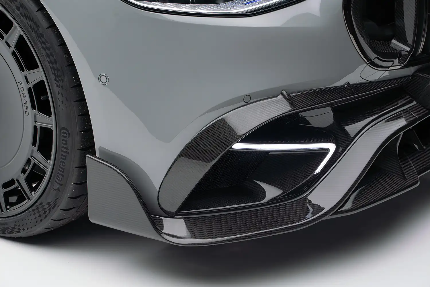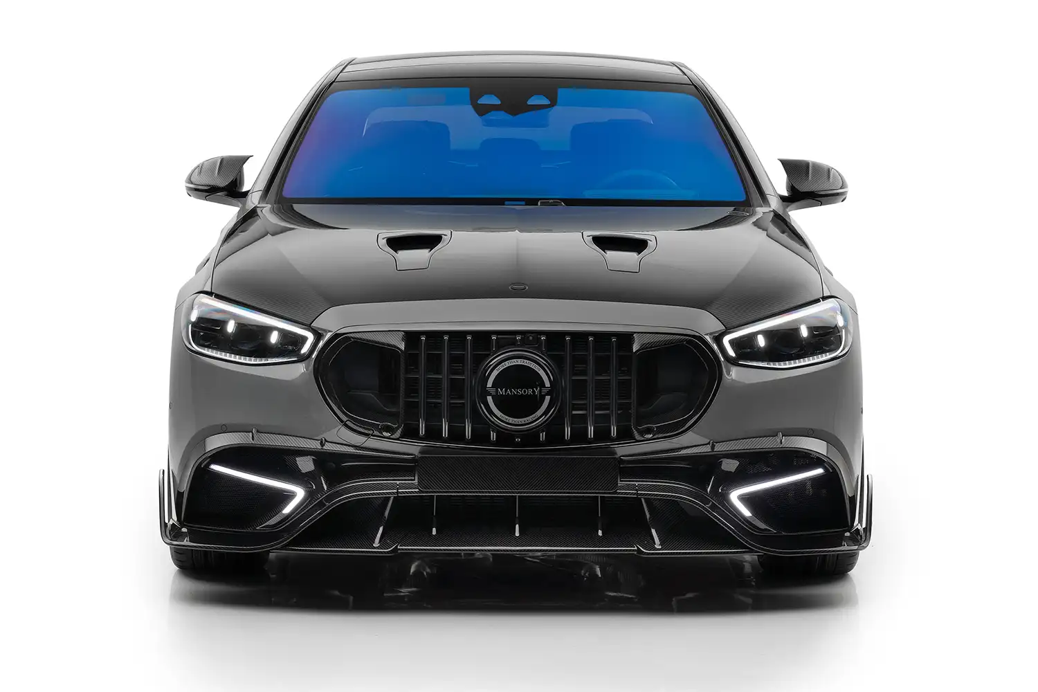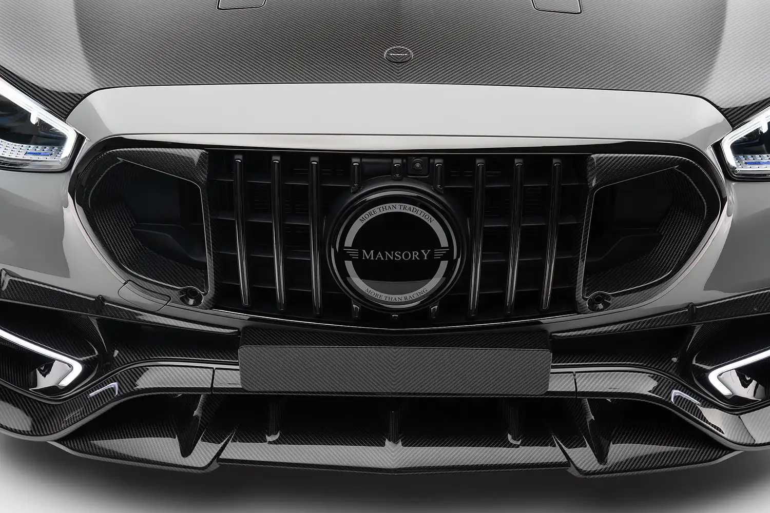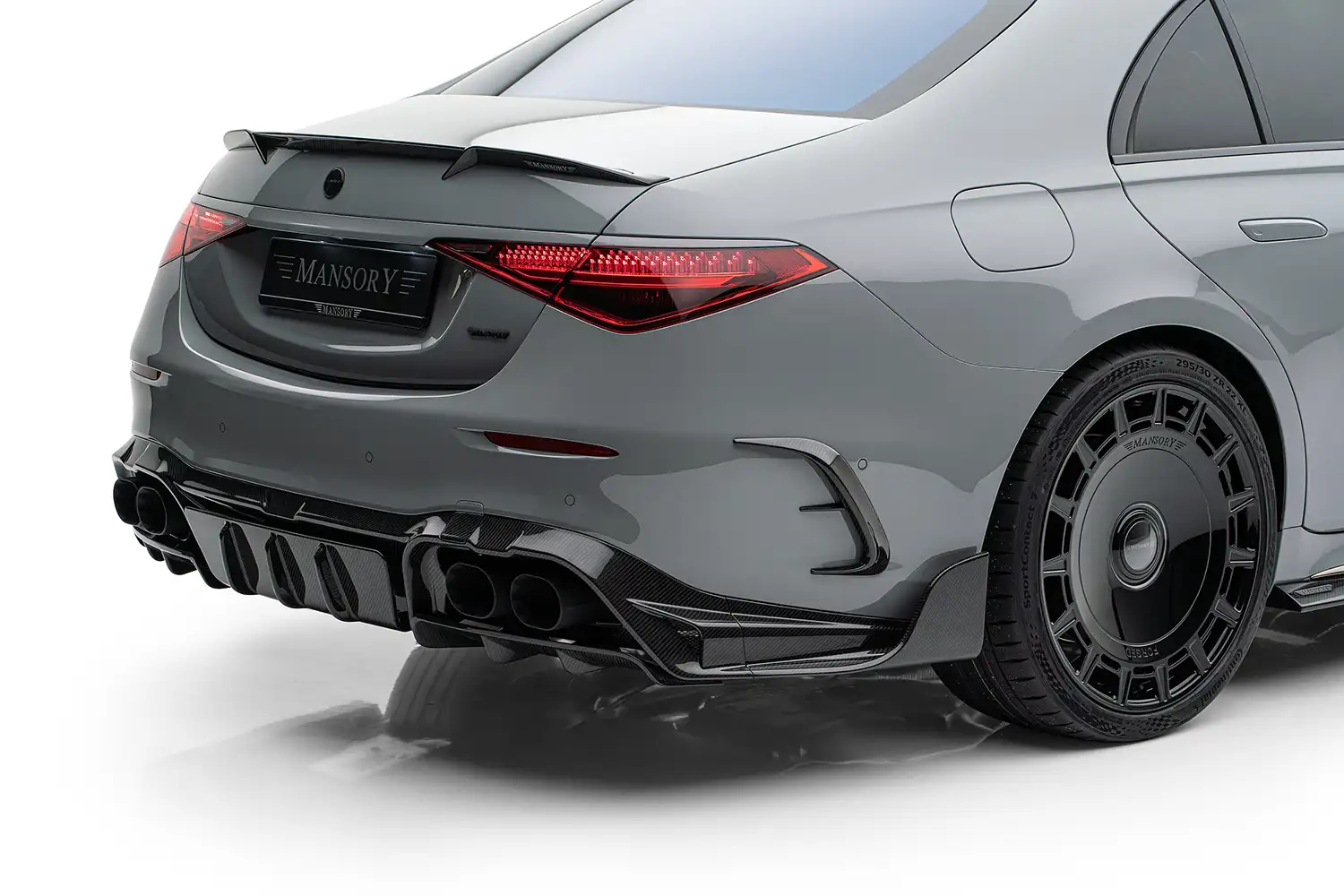 MANSORY refines the entire aerodynamics of the “Mercedes-AMG S 63 E PERFORMANCE by MANSORY” completely “in-house”. This results in an impressive styling combined with optimised aerodynamics with increased downforce values for significantly improved cornering performance.