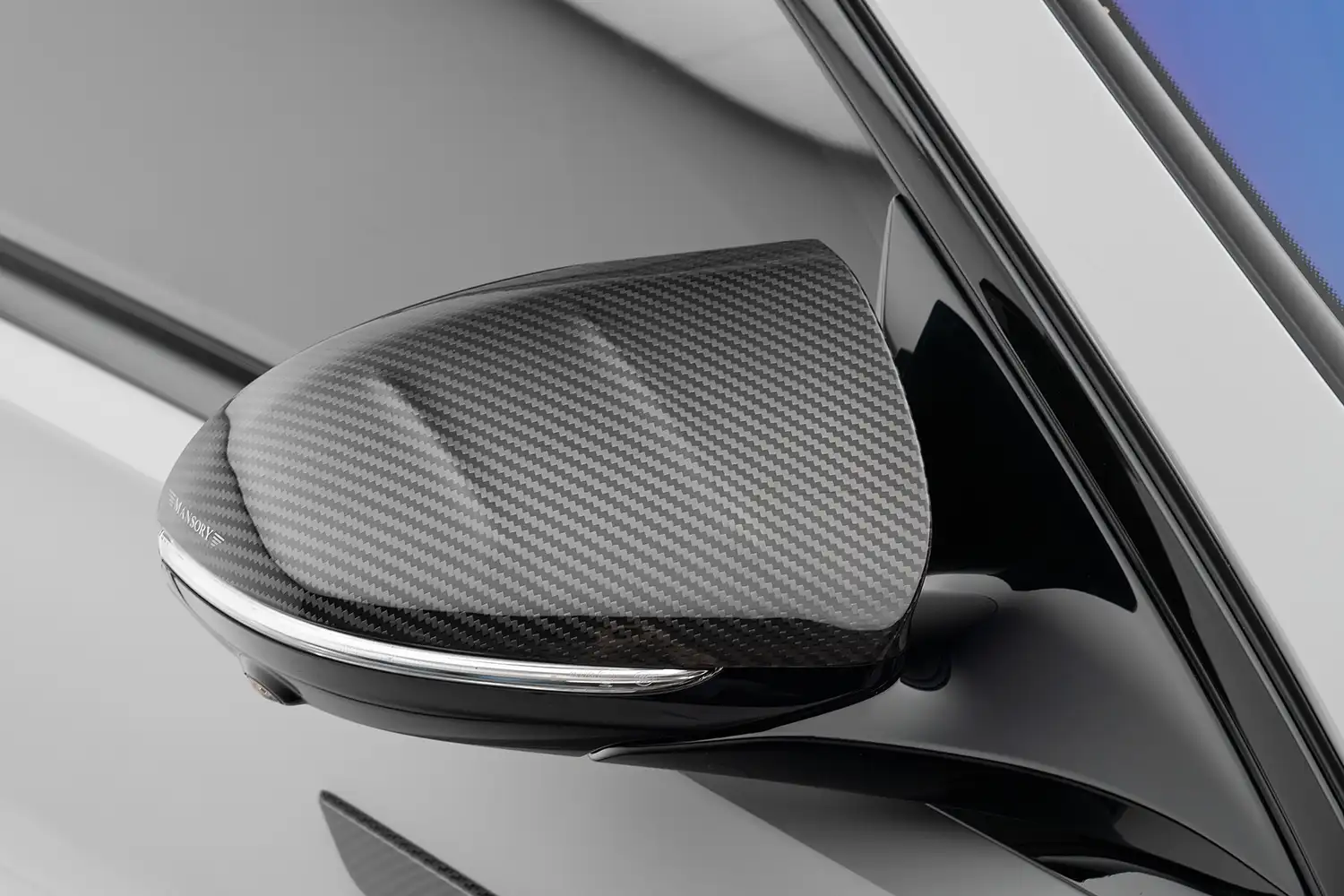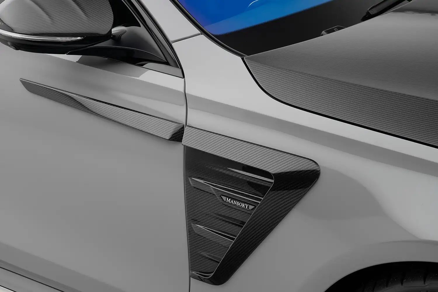 To increase the downforce on the rear axle, the MANSORY engineers developed a new spoiler for mounting on the tailgate, which is also made entirely of carbon. In addition, a new rear apron with diffuser and side flaps skilfully sets off the striking tailpipes of the sports exhaust system. The rear apron as such is available in two versions: With and without central brake light. Numerous other carbon-fibre components such as the roof spoiler, mirror housings and air intake trim add further striking highlights.