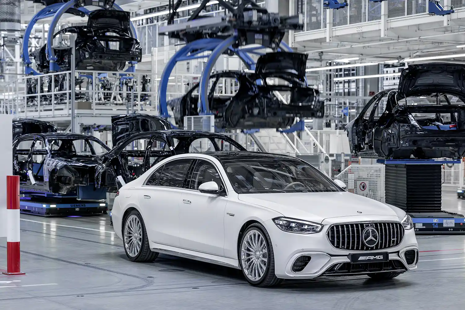 The Mercedes‑AMG S 63 E PERFORMANCE will roll off the assembly line in Factory 56 in Sindelfingen. Now Factory 56, which opened in 2020, will manufacture its second AMG model along with the Mercedes‑AMG EQS 53 4MATIC+ (WLTP: combined power consumption: 24.3-21.8 kWh/100 km, combined CO2 emissions: 0 g/100 km). New models and drive variants are quickly integrated into the running line ‑ proof of the high flexibility and efficiency of Factory 56.