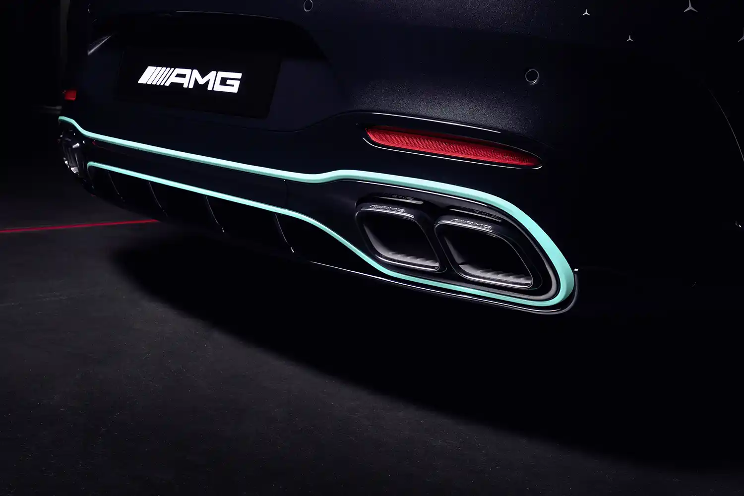 The Burmester® high end 3D surround sound system, ambient lighting, the MBUX Interior Assistant, the Driving Assistance package and the head-up display are included as standard in this very extensively equipped special model. AMG TRACK PACE provides support with a wide range of data when driving on the racetrack. The Load Compartment package increases everyday practicality, while the illuminated AMG door sill panels welcome passengers with the AMG logo.
