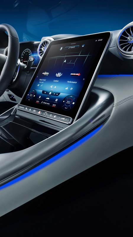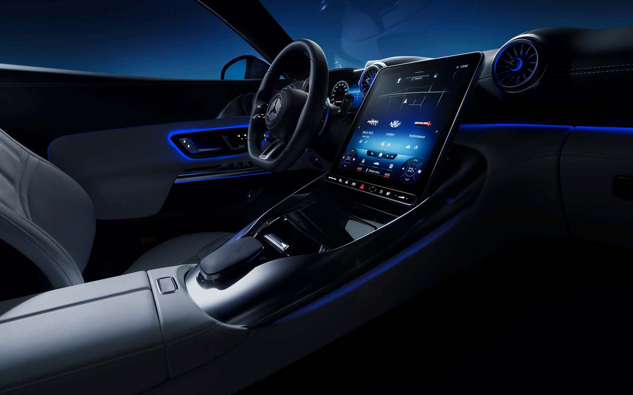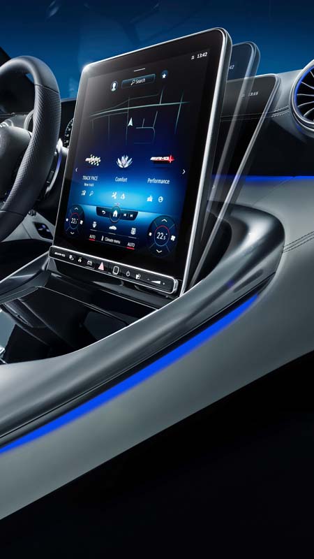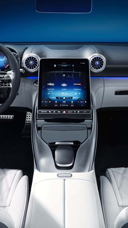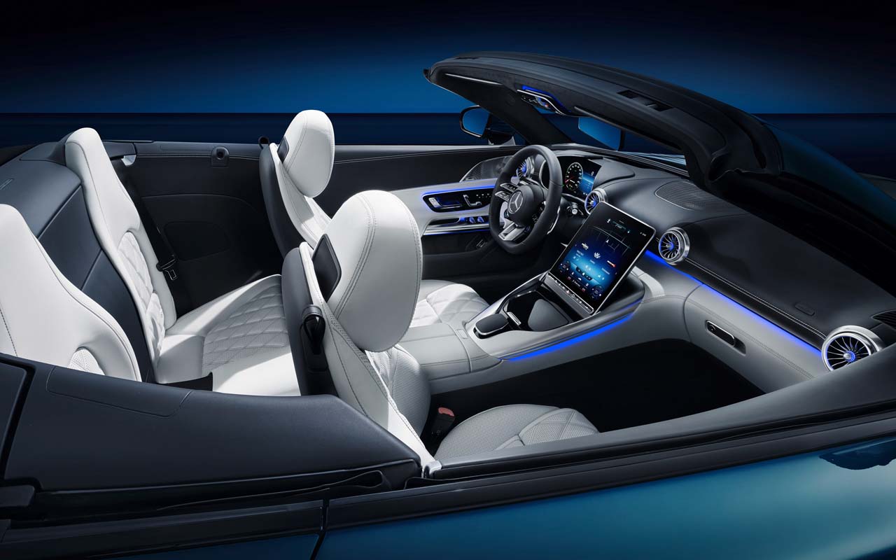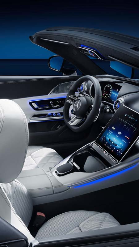 The new Mercedes-AMG SL returns to its roots with a soft top and progressive character. At the same time, the luxurious roadster is suitable for everyday use as a 2+2-seater, and for the first time puts its performance to the pavement with all-wheel drive. Further high-tech components sharpen the dynamic profile as do comfort characteristics in the first SL ever developed by Mercedes-AMG.