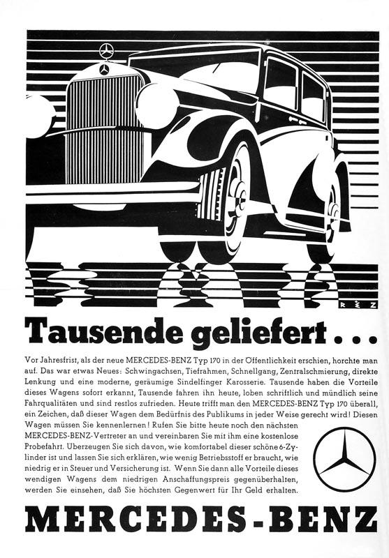 The “ADAC Motorwelt”, Issue 40/41 of 8 October 1931, enthused about the compact passenger car: “It can be described as one of the most advanced cars of the present day for everyday use, and rightly deserves the often unjustly awarded title of ‘top achievement in international automotive engineering’,” and continued: “There are indeed few cars in which the chassis and body are designed to fit together as well as in the Mercedes-Benz model 170.”