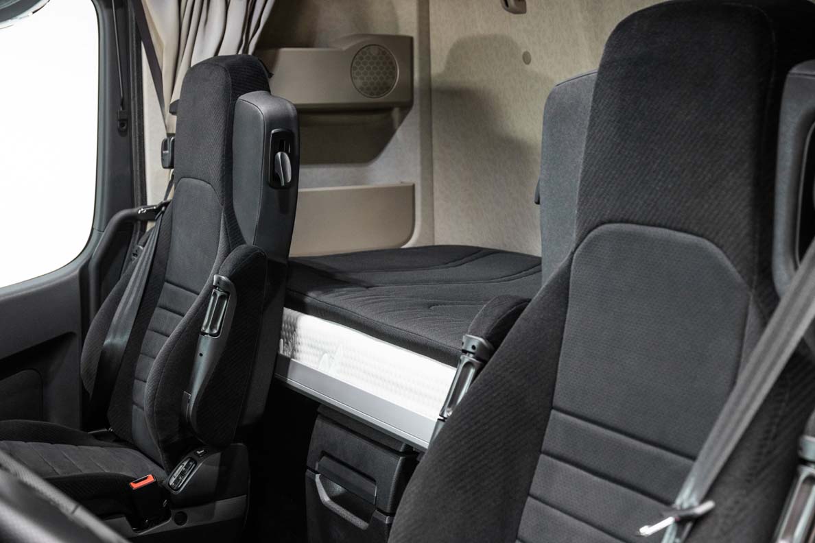 It begins with the driver’s cab, which on the StreamSpace, BigSpace and GigaSpace variants is 2.5 metres wide and makes for an exceptionally spacious interior. The lack of engine tunnel means that the cab has a flat floor, creating a really comfortable ambience. The improved cab noise and heat insulation keeps unwanted and annoying noise at bay to assist with relaxation, particularly at break times.