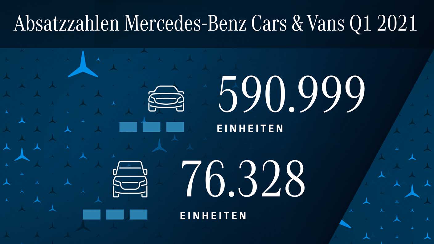 Mercedes-Benz Cars sold 590,999 passenger cars (+22.3%) in the first quarter of 2021 driven by China and US retail sales as well as strong demand for plug-in hybrids and all-electric vehicles. In Europe, one in four cars sold by Mercedes-Benz and smart was an xEV. Globally, plug-in hybrids and all-electric cars made up about 10% of overall sales, with approximately 59,000 units and thereof more than 16,000 all-electric vehicles sold.