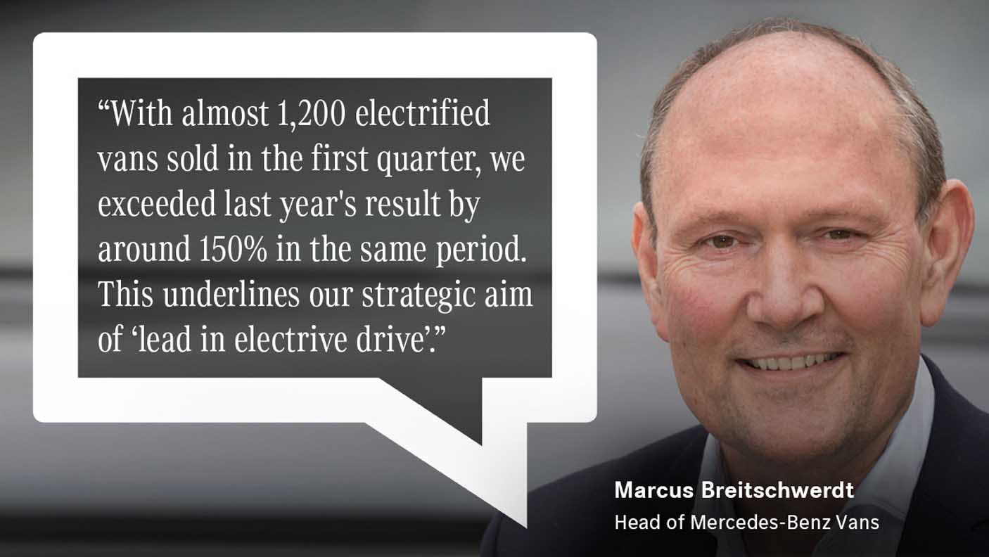 “With almost 1,200 electrified vans sold in the first quarter, we exceeded last year’s result by around 150% in the same period. This underlines our strategic aim of ‘lead in electrive drive’,” stated Marcus Breitschwerdt, Head of Mercedes-Benz Vans. “In the second half of this year, we will bring the new Citan to market, followed by its electric version next year. This will make us a provider of electric vans in every segment.”