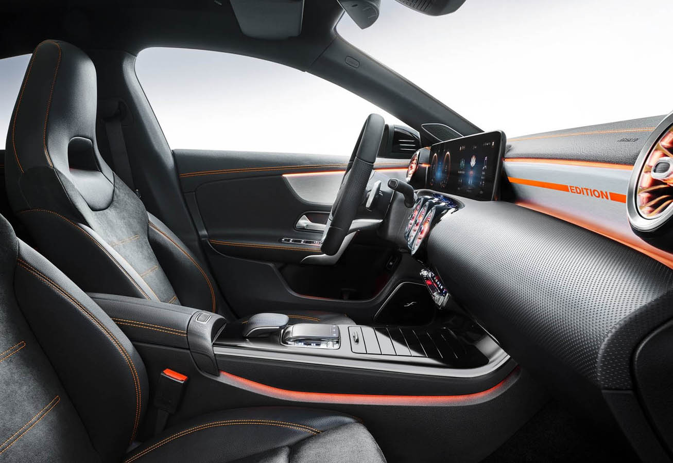 In the interior, all elements are arranged according to the overarching design themes of ‘high tech’ and ‘youthful avant-garde’ – be that the steering wheel, the door handle operating module, the centre console or the seats. As in the A-Class, the unique interior architecture is shaped in particular by the avant-garde design of the dashboard.